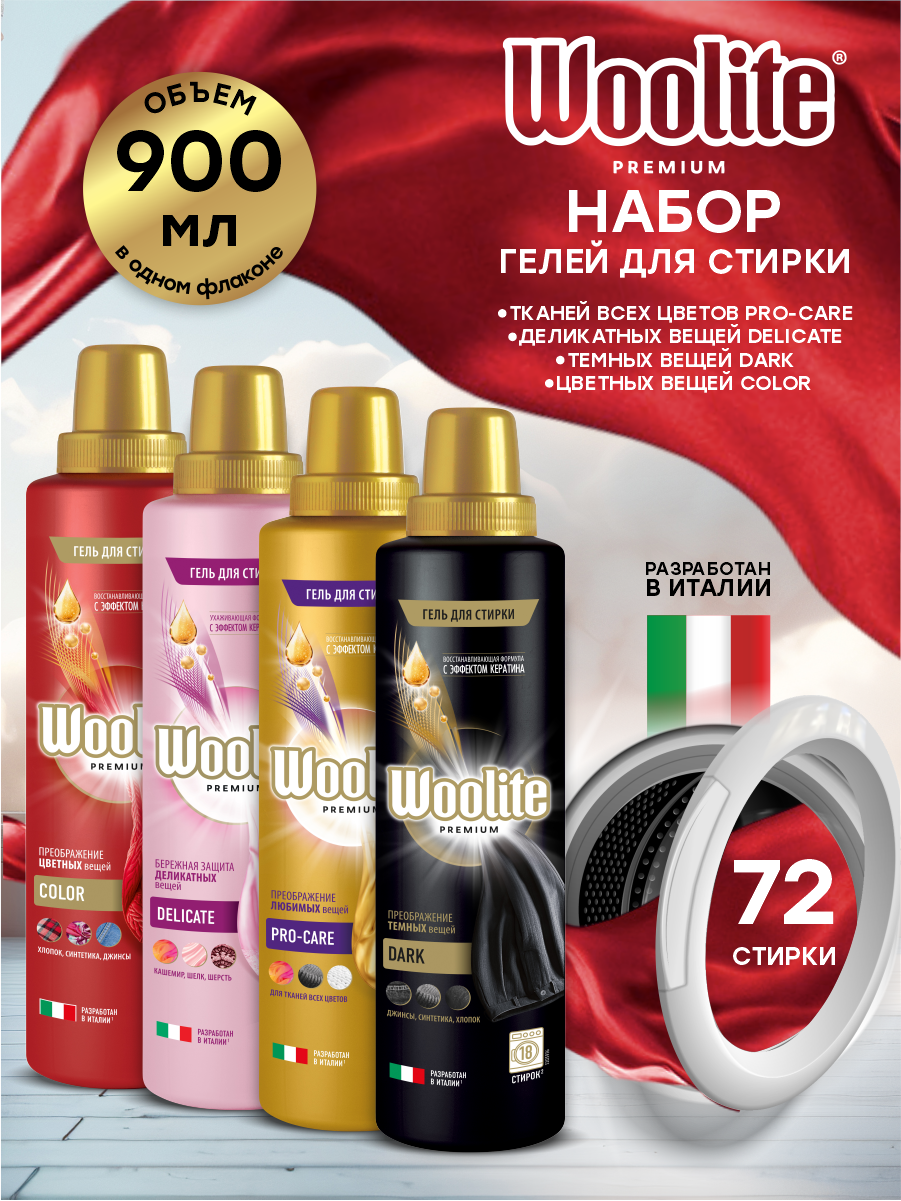 Набор Woolite Premium Гелей для стирки белья и одежды Color+Dark+Delicate+Pro-care 900 мл.