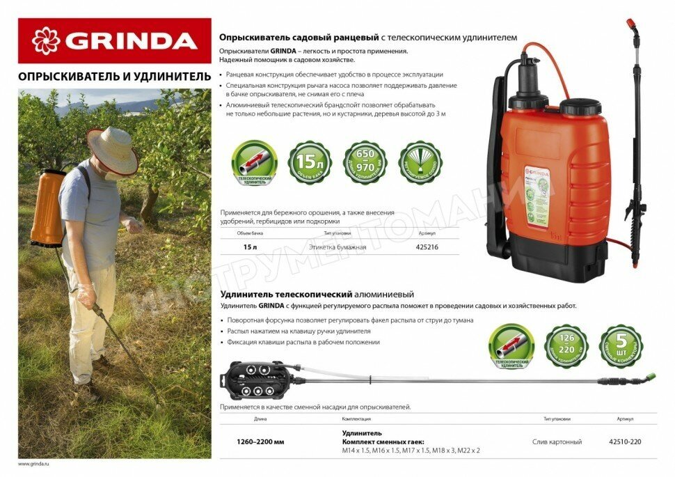 Телескопический удлинитель GRINDA ES-2200 1260-2200 мм для ранцевых опрыскивателей стеклопластиковый (42510-220_z01)