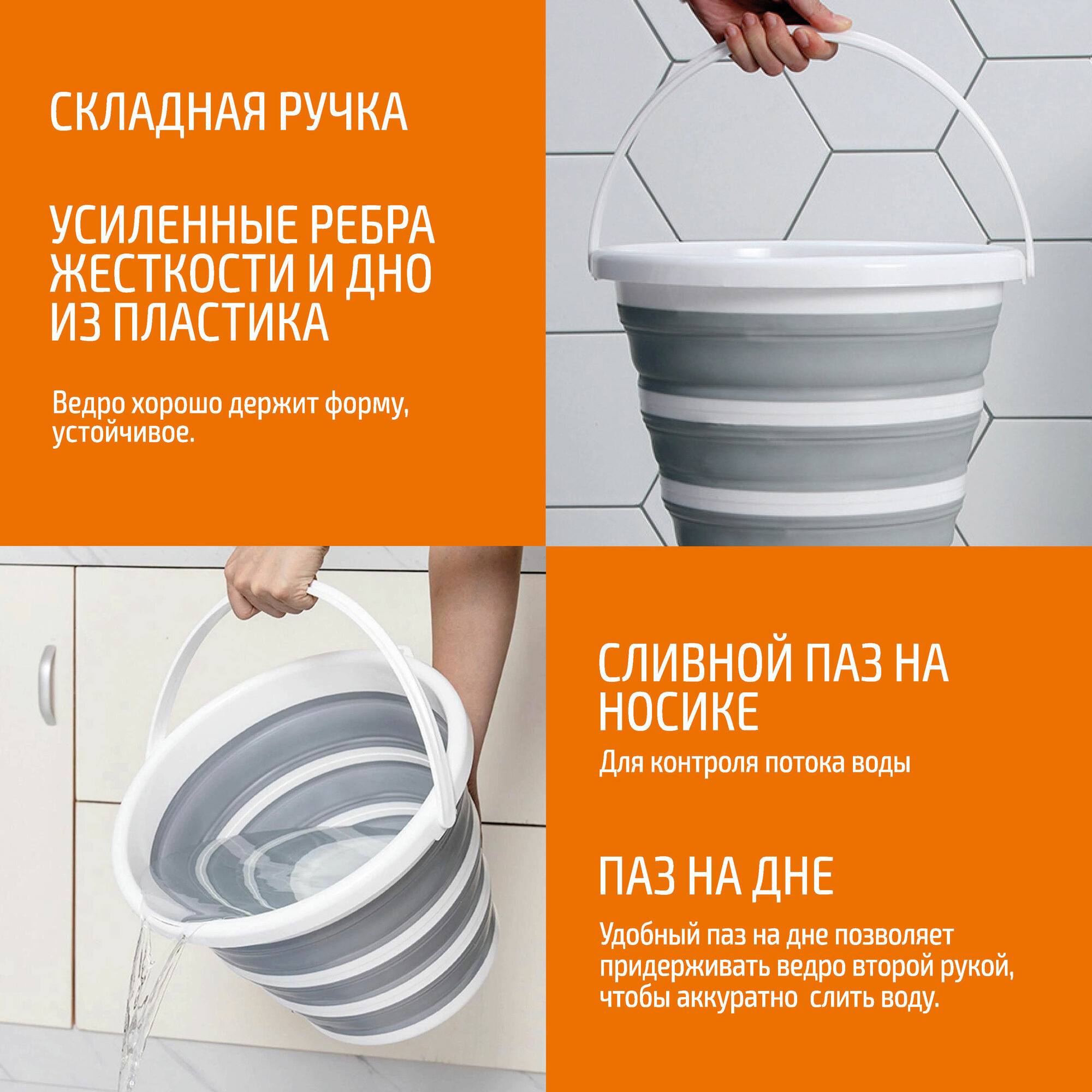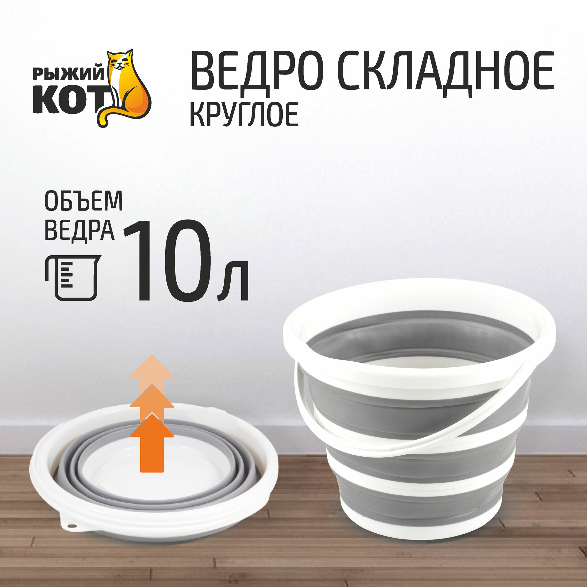 Купить Ведро Рыжий кот складное круглое RFB-10/003918 10 л серый 36 см 32 см 32 см 0.32 кг 10 л 32 см