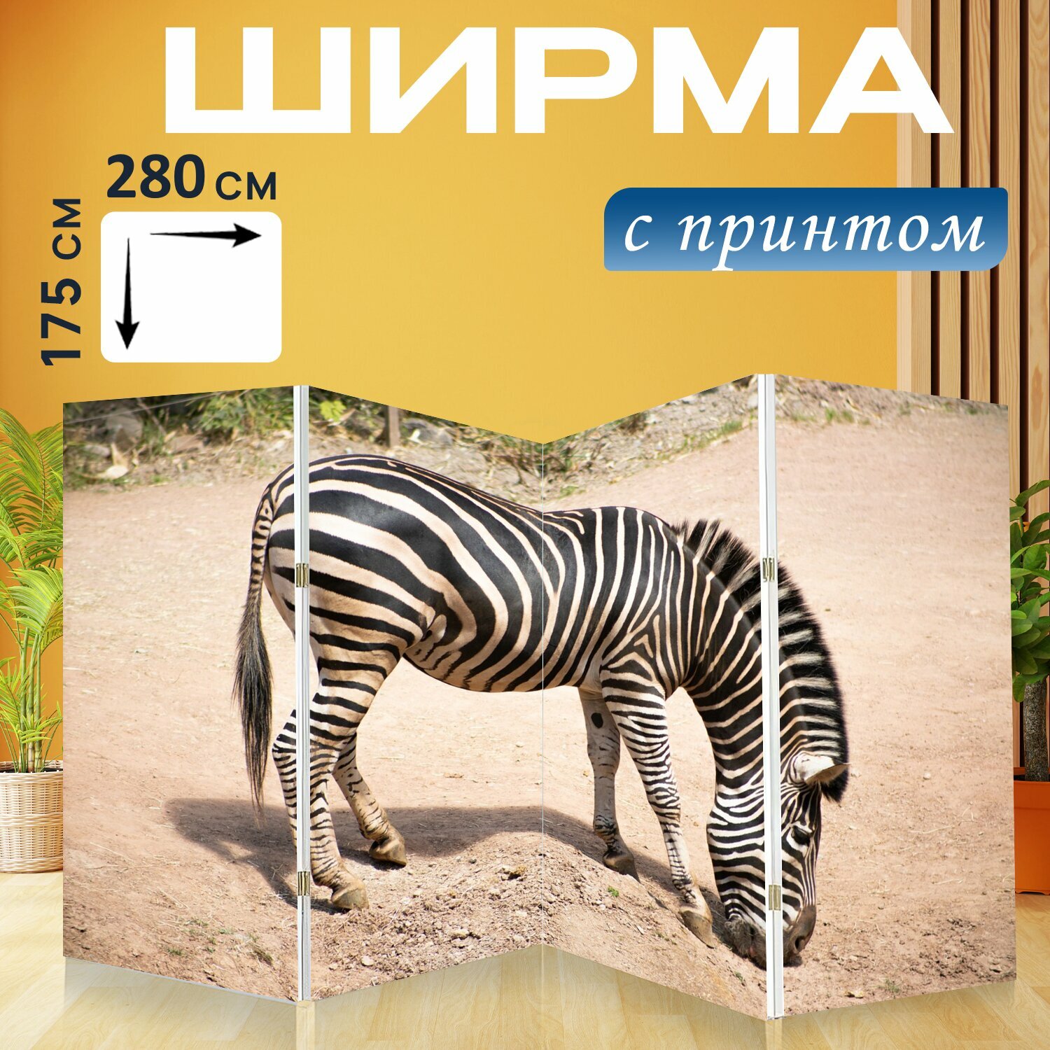 Купить Ширма "Зебра, полосы, животное" перегородка для зонирования комнаты с принтом 280x175 см. на холсте