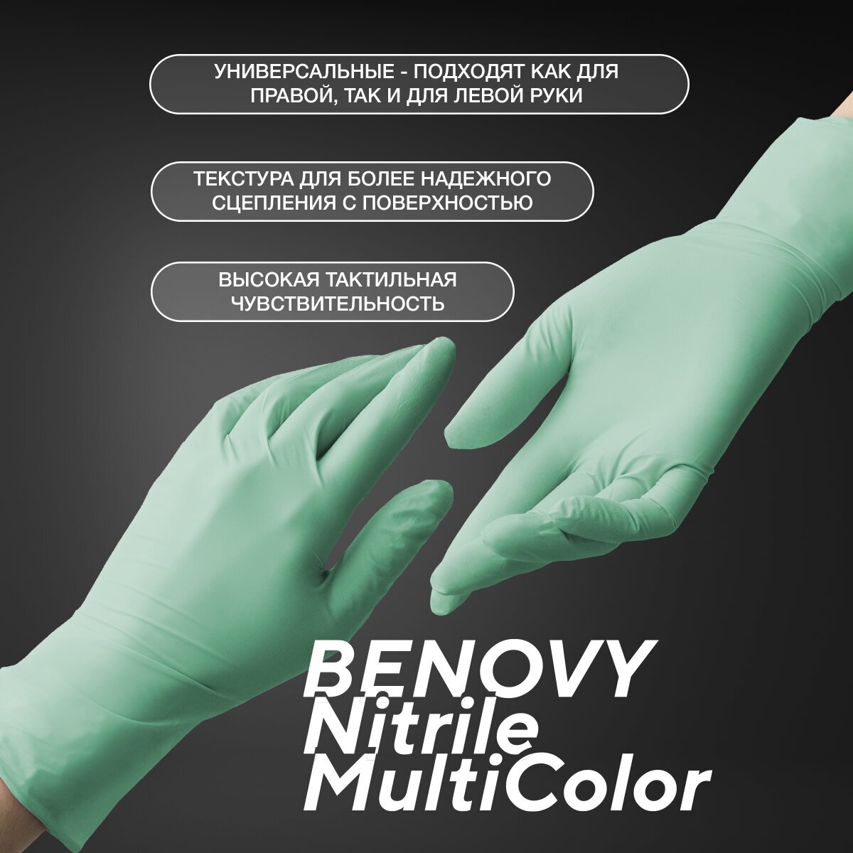 СохранитьПерчатки нитриловые S текстурированные на пальцах BENOVY зеленый (50 пар) интересное: