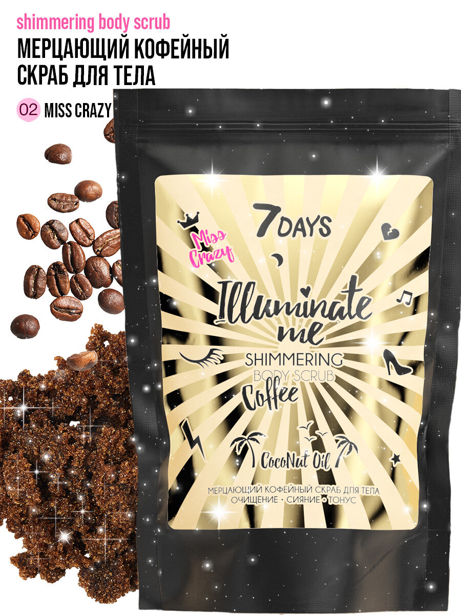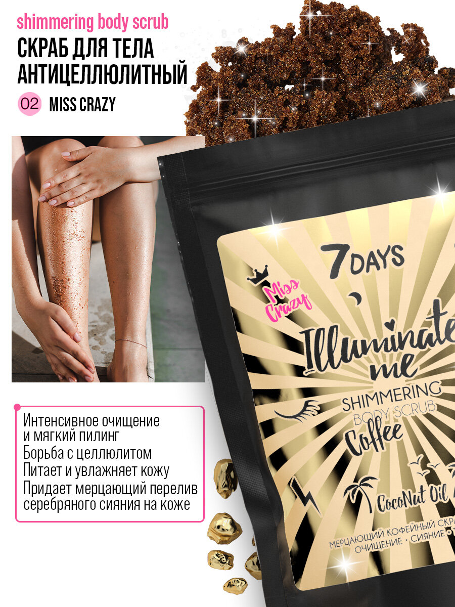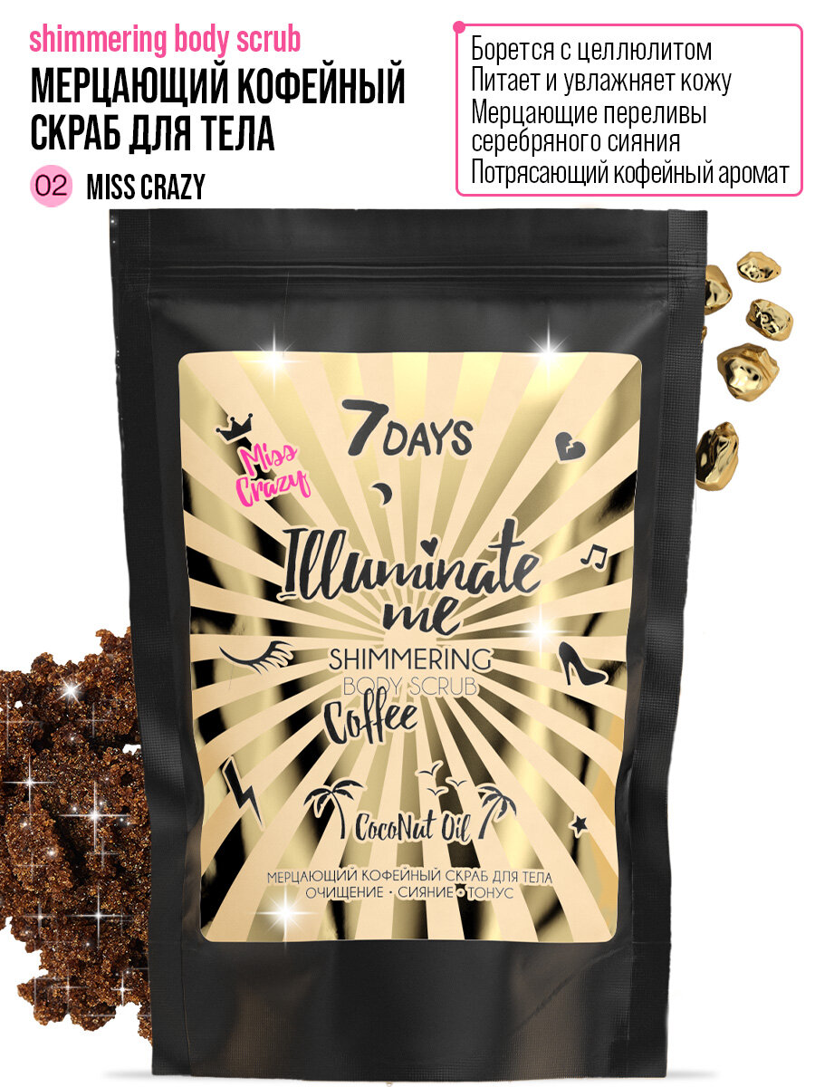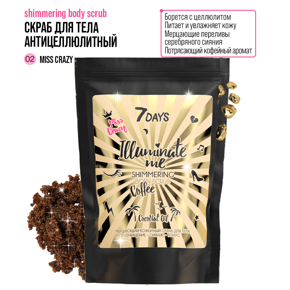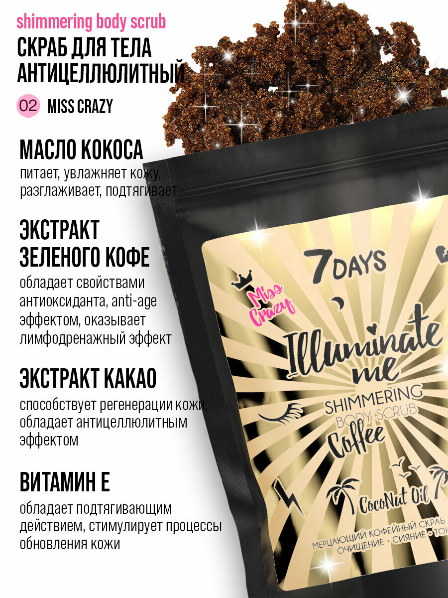 Купить Скраб для тела, кофейный с шиммером 7DAYS ILLUMINATE ME MISS CRAZY антицеллюлитный, 200мл