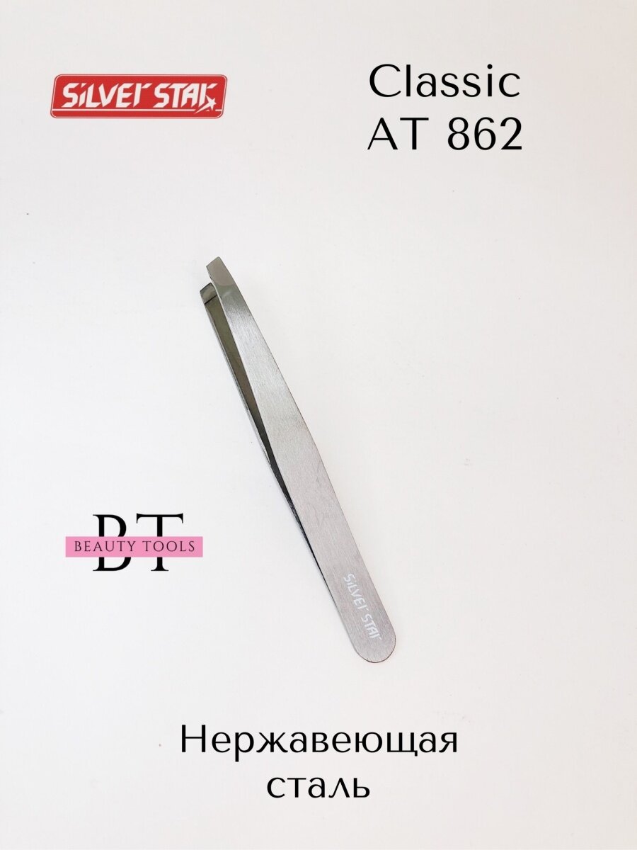 Silver Star Пинцет скошенный кончик Classic AT-862, полуматовый, серый интересное: