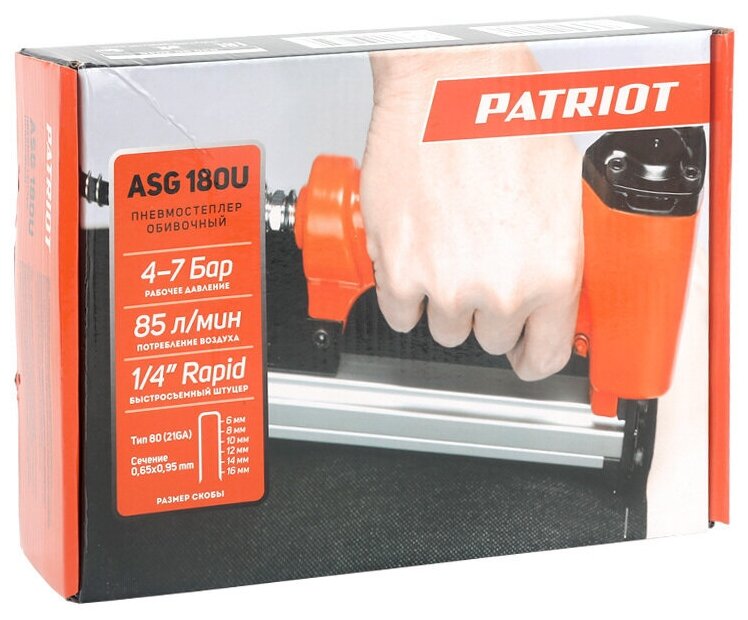 Пневмостеплер обивочный Patriot ASG 180, 85 л/мин, тип 80 (21ga), длина 6-16 мм, ширина 12.8 мм 69