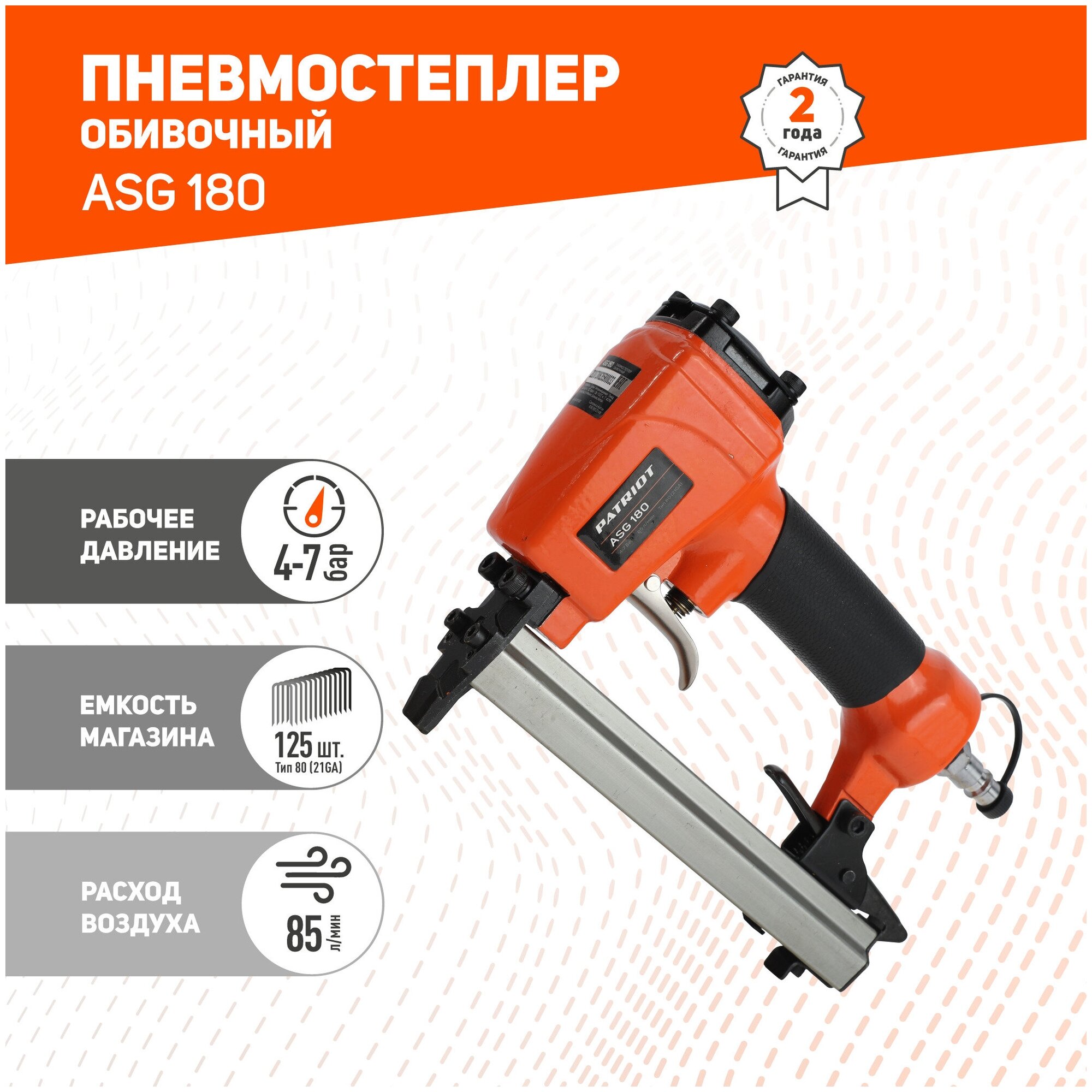 Пневмостеплер обивочный PATRIOT ASG 180, , 85 л/мин, тип 80 (21GA),длина 6-16 мм, ширина -12,8 мм, сечение 0,65 х 0,95мм