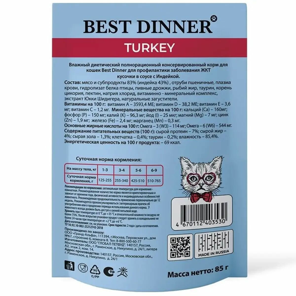 Купить BEST DINNER Vet Profi Exclusive Gastro Intestinal Корм влаж.индейка кусочки в соусе д/кошек пауч 85г