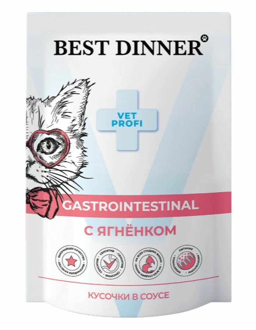 Купить BEST DINNER Vet Profi Exclusive Gastro Intestinal Корм влаж.ягненок кусочки в соусе д/кошек пауч 85г