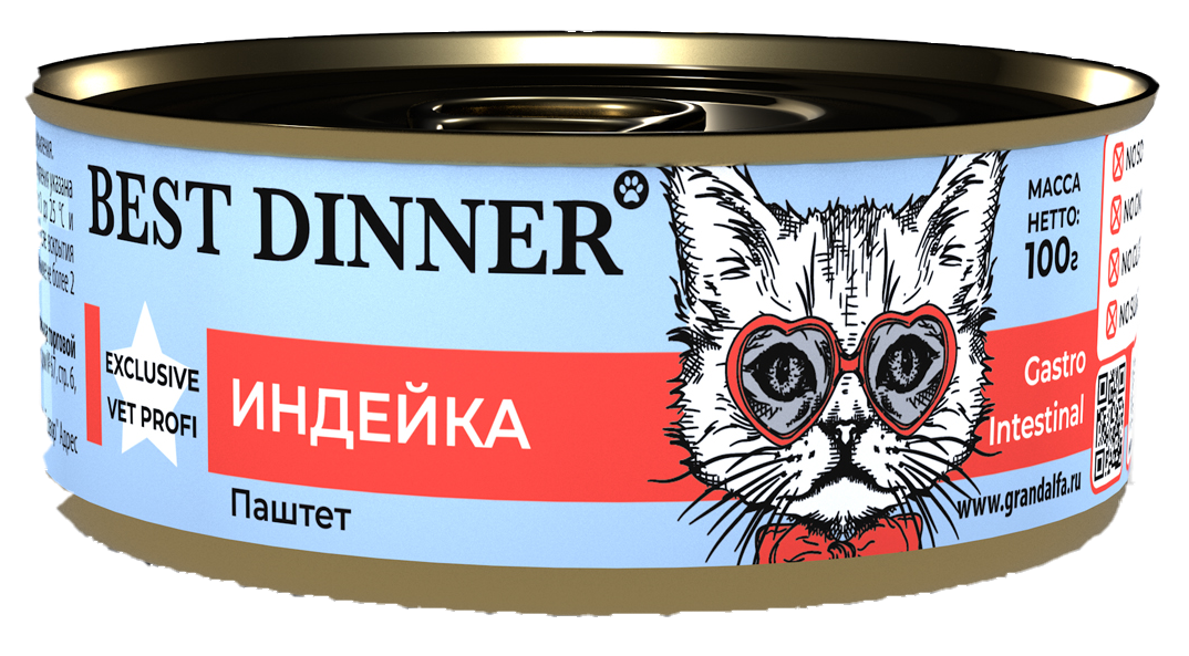 Купить BEST DINNER Vet Profi Exclusive Gastro Intestinal Корм влаж.индейка д/кошек конс.100г