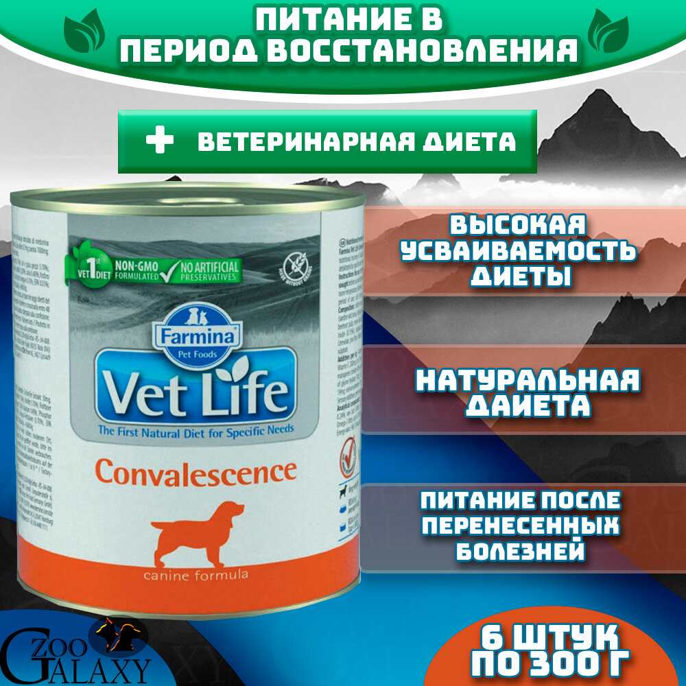 Влажный диетический корм в период выздоровления и реабилитации, паштет, для собак, Farmina Vet Life Natural Diet Convalescence, упаковка 6 шт х 300 г