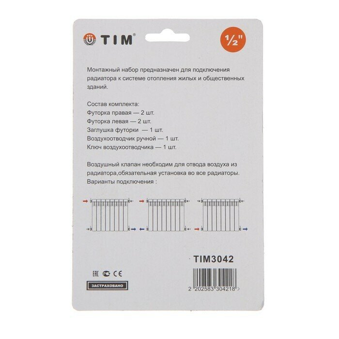 Монтажный комплект 7 в 1 для радиаторов 1/2" (20) TIM арт. TIM3042