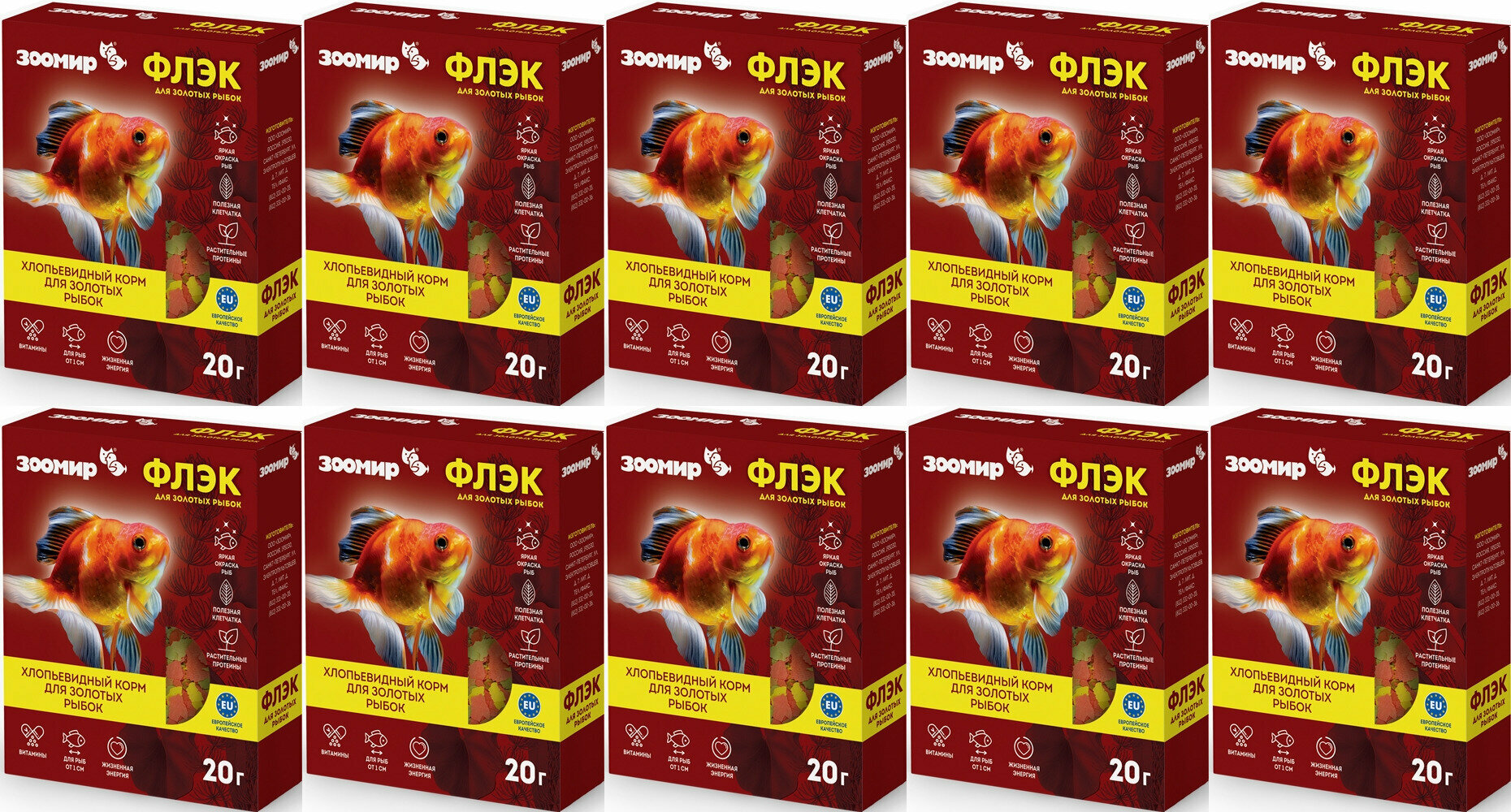 Корм для рыб зоомир Флэк, коробка, Корм для золотых рыбок (0.02 кг), 10 шт.