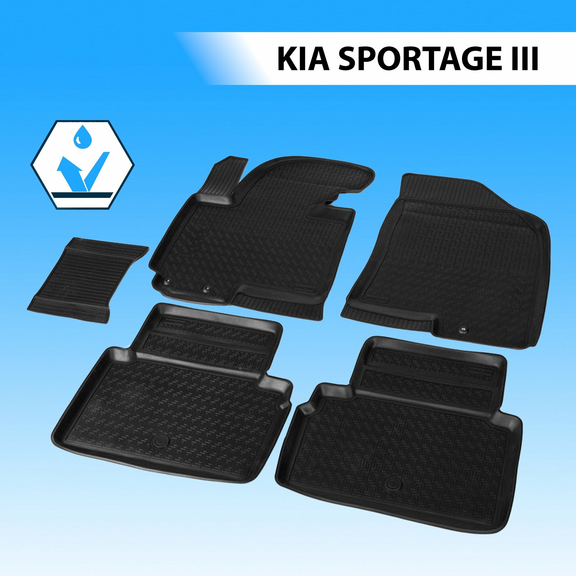 Коврики в салон автомобиля Rival для Kia Sportage III 2010-2016, полиуретан, без крепежа, 5 шт., 12805001