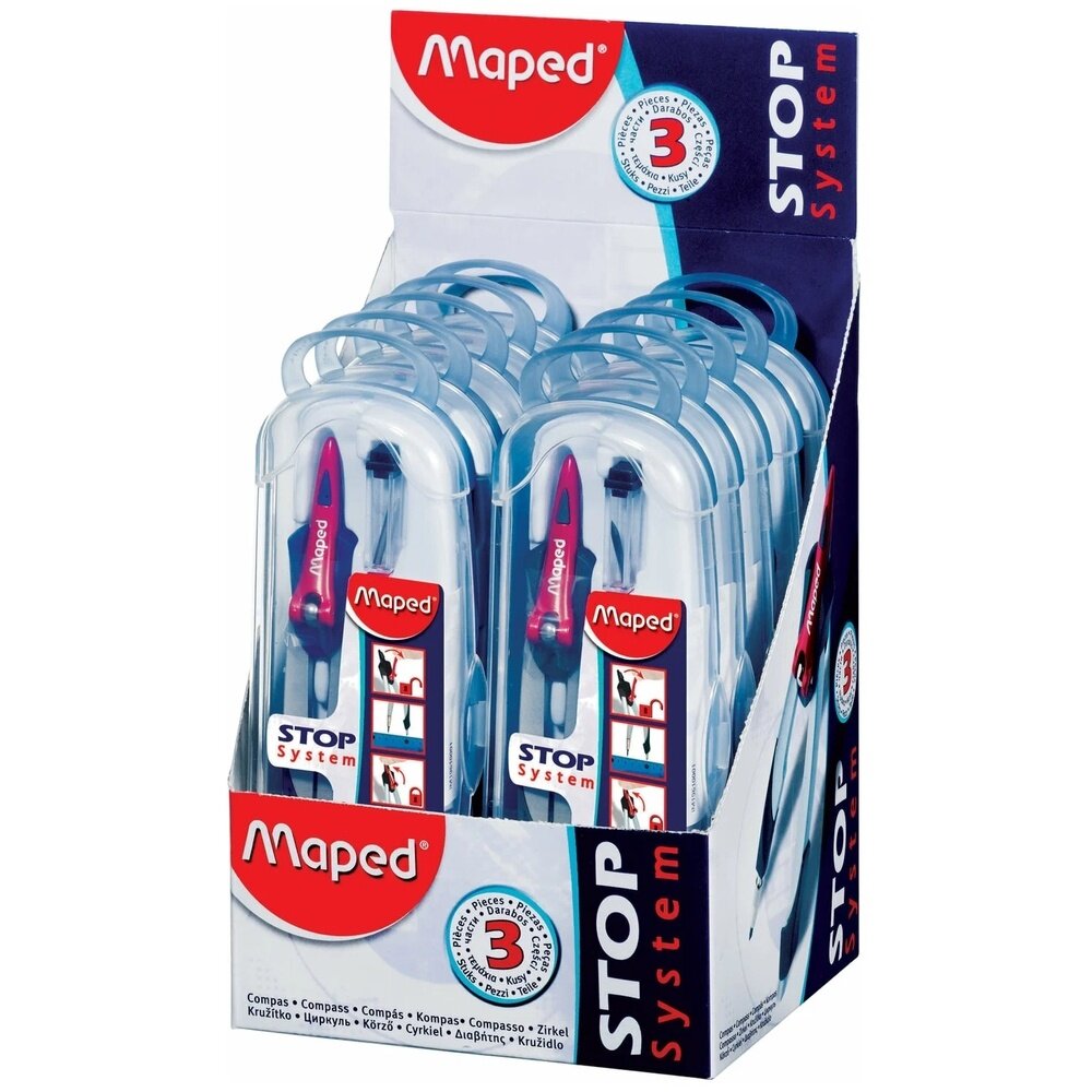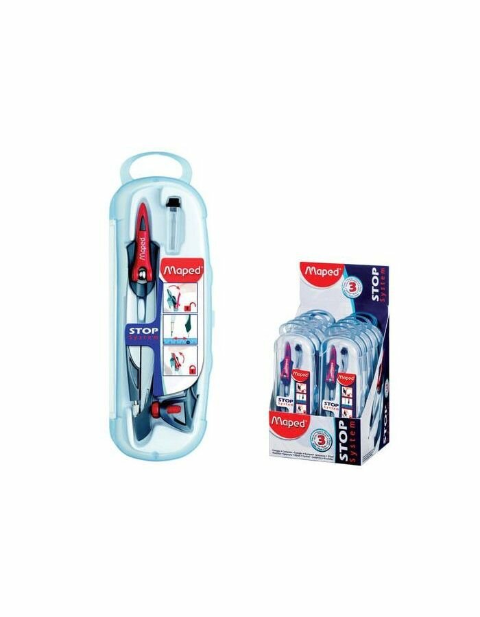 Готовальня MAPED"Stop System", 3 предмета, ударопрочный пенал с европодвесом, 196100