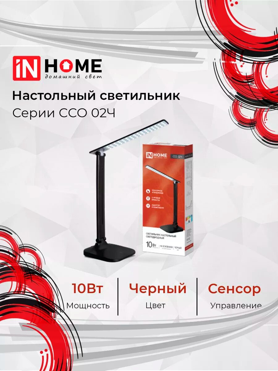 Светильник настольный светодиодный ССО 02Ч 10Вт 4000К 625лм сенсор-диммер адаптер черн. IN HOME 4690612013480 (1 шт.)