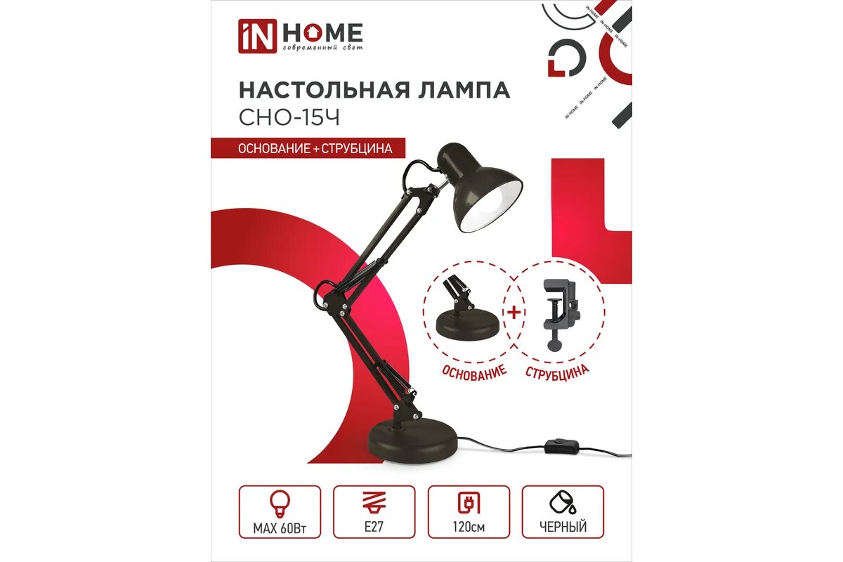 Настольная лампа (светильник) IN HOME СНО-15Ч на основании 60Вт E27 черный 4690612012902