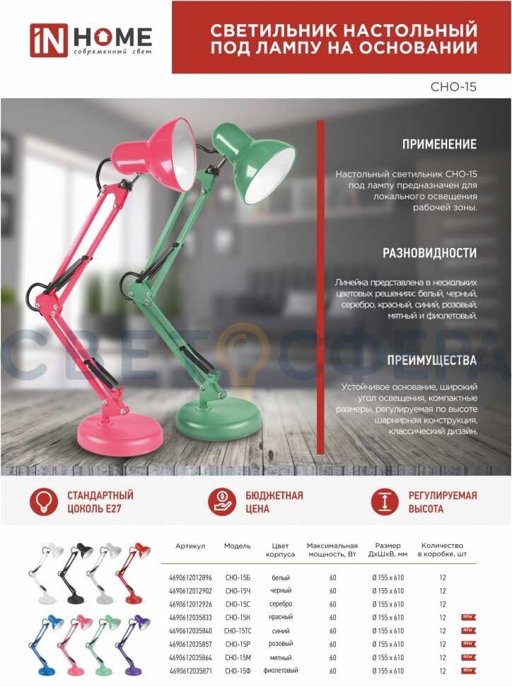 Лампа настольная IN HOME СНО (4690612012902) Е27 60 Вт 230 В IP20