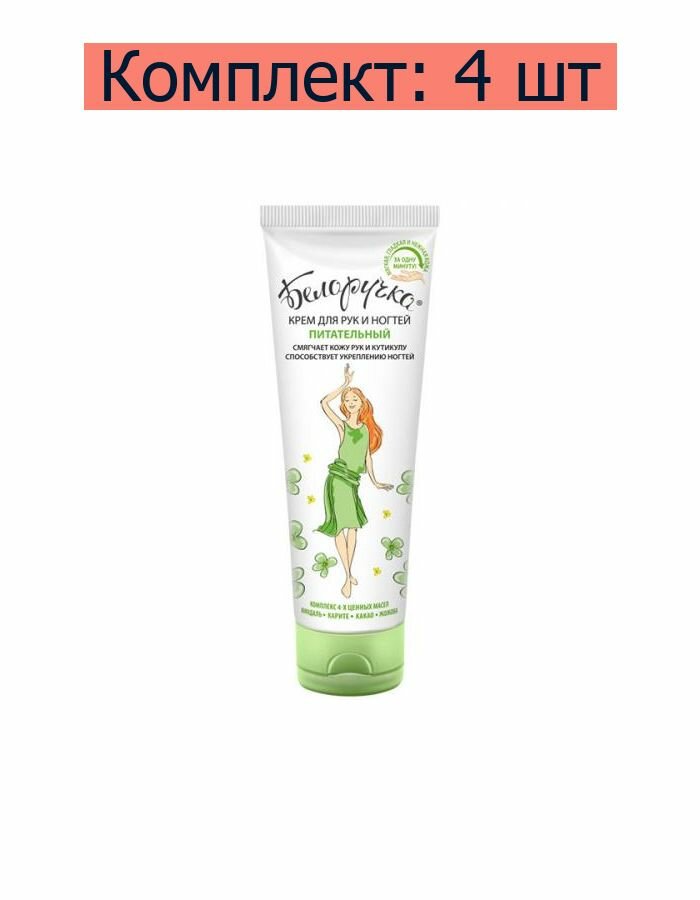 Белоручка Крем для рук и ногтей Питательный, 75 мл, 4 шт