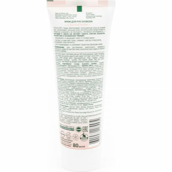 Свобода (Svoboda) Крем для рук Svoboda Natural с коллагеном 80 мл интересное: