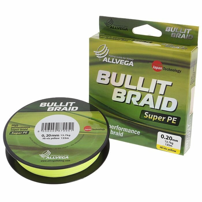 Шнур Bullit Braid Allvega 135м, 0,20 мм, 13.7 кг, желтая
