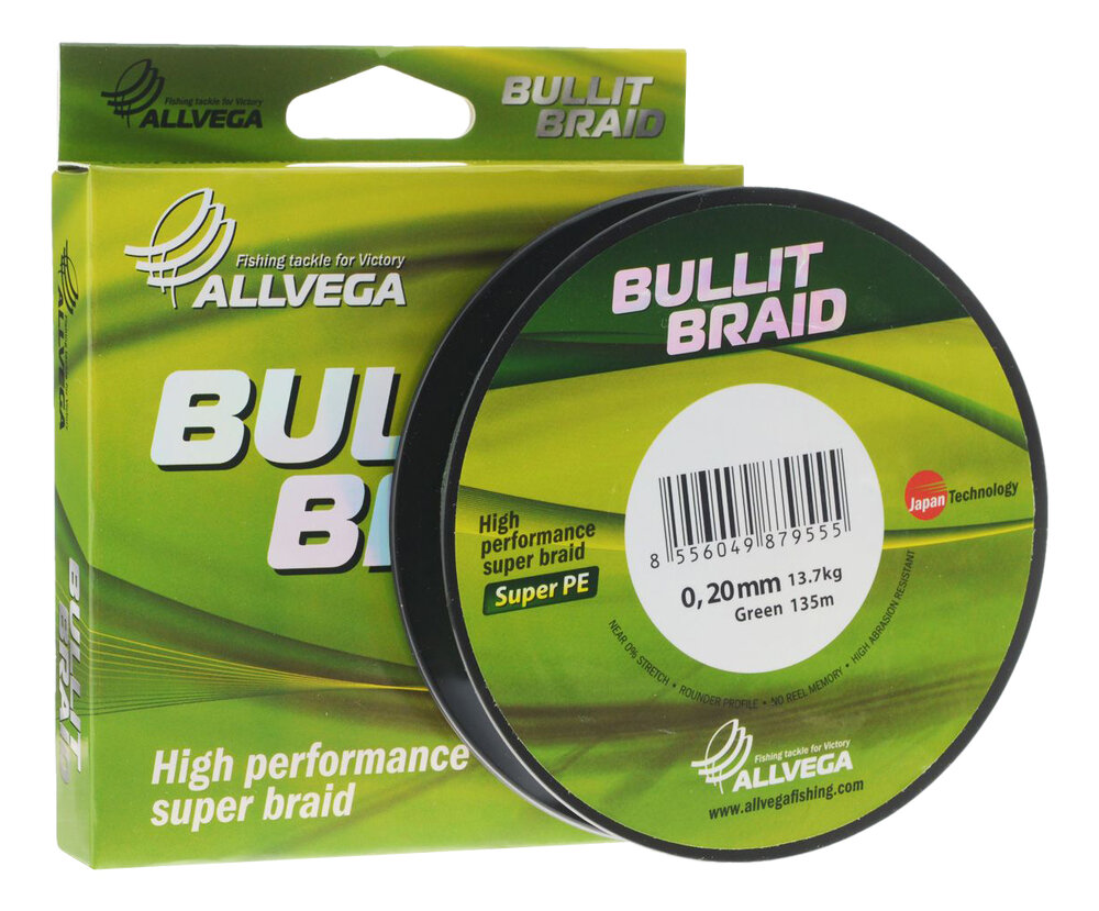 Плетеный шнур Allvega Bullit Braid 135м 0,30мм 23,4кг, темно-зеленая