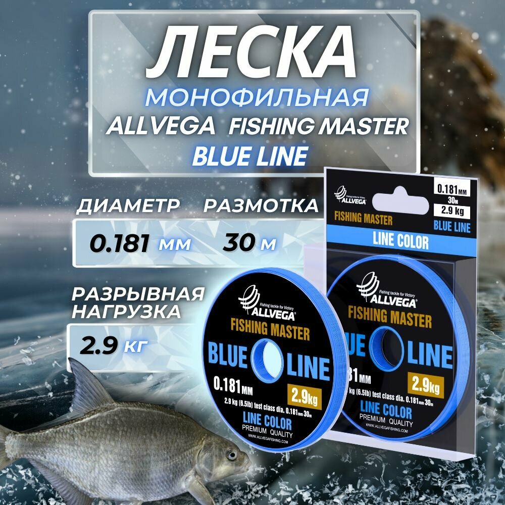 Леска монофильная ALLVEGA "Fishing Master" 30м 0,148мм (2,2кг) голубая