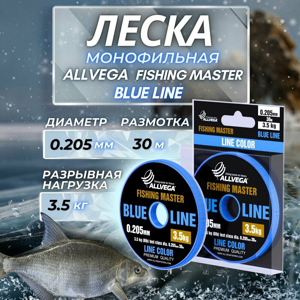 Купить Леска монофильная ALLVEGA "Fishing Master" 30м 0,205мм (3,5кг) голубая
