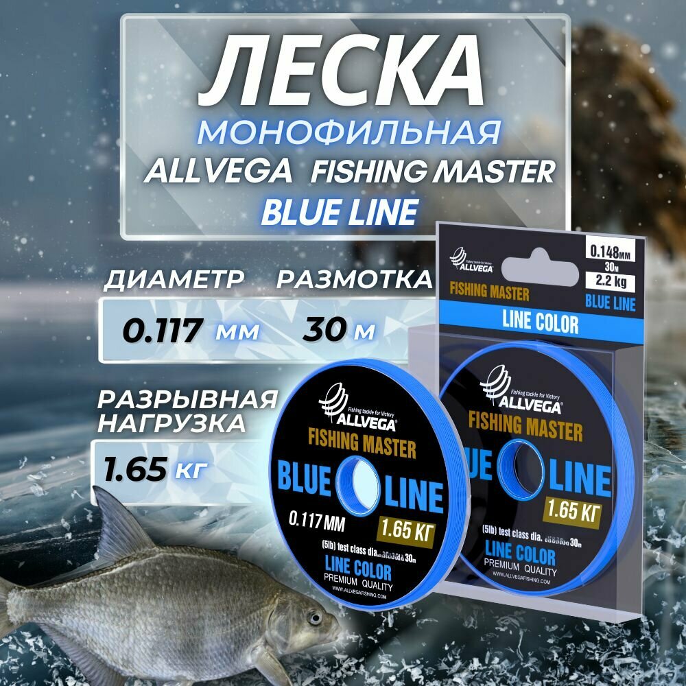 Купить Леска монофильная ALLVEGA "Fishing Master" 30м 0,117мм (1,65кг) голубая