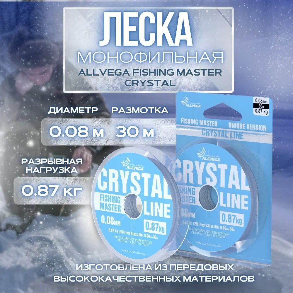 Купить Леска монофильная ALLVEGA "Fishing Master" CRYSTAL 30м 0,08мм (0,87кг)