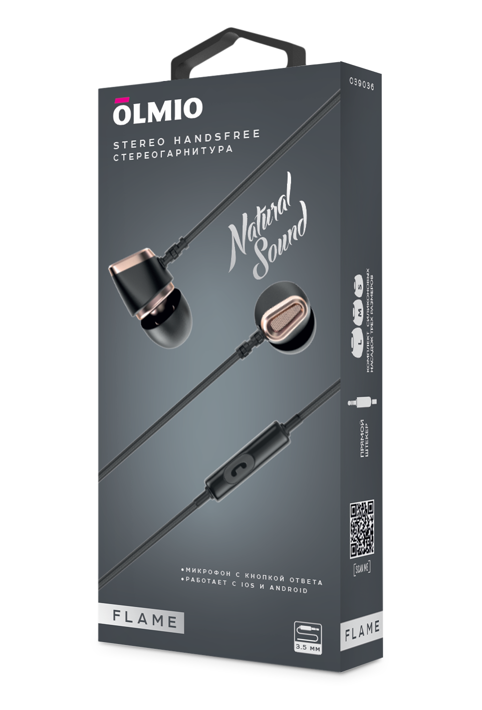 Наушники-гарнитура "Flame" 3.5мм, серые, OLMIO