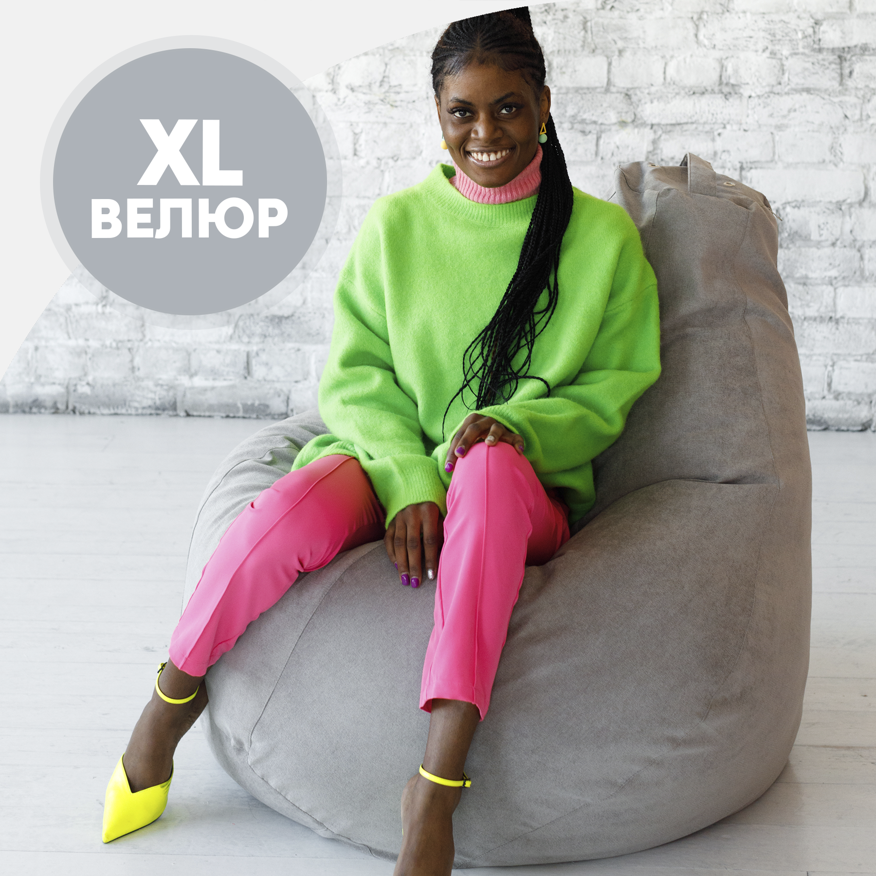 Купить Кресло Мешок Груша Серый Велюр (XL, Классический)