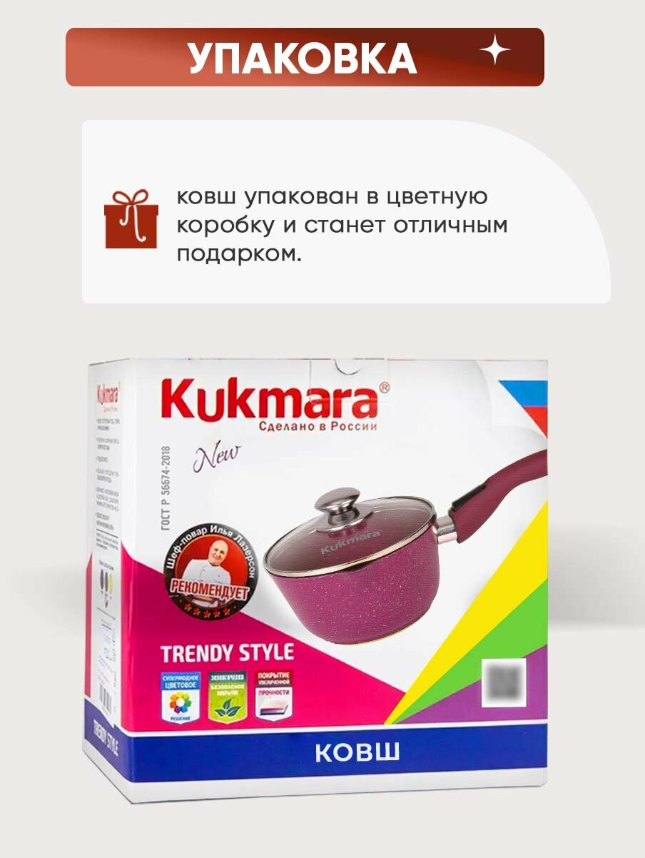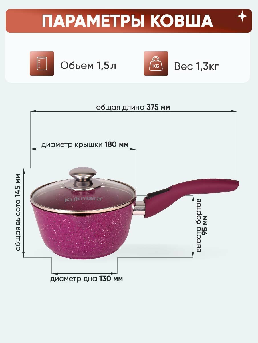 СохранитьКовш антипригарный 1,5л со съёмной ручкой и стеклянной крышкой Trendy style mystery TM KUKMARA интересное: