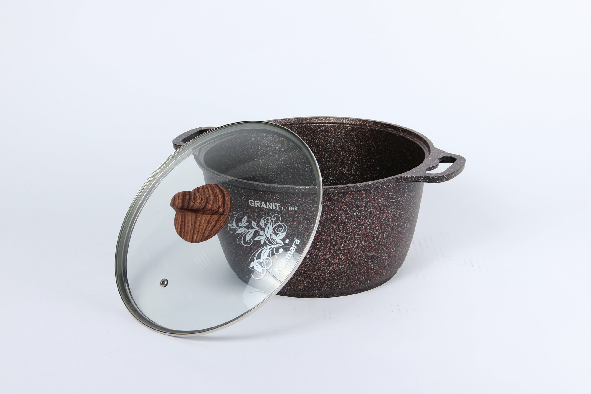 Кастрюля KUKMARA Granit ultra, 2 л, стеклянная крышка, антипригарное покрытие, коричневый мрамор
