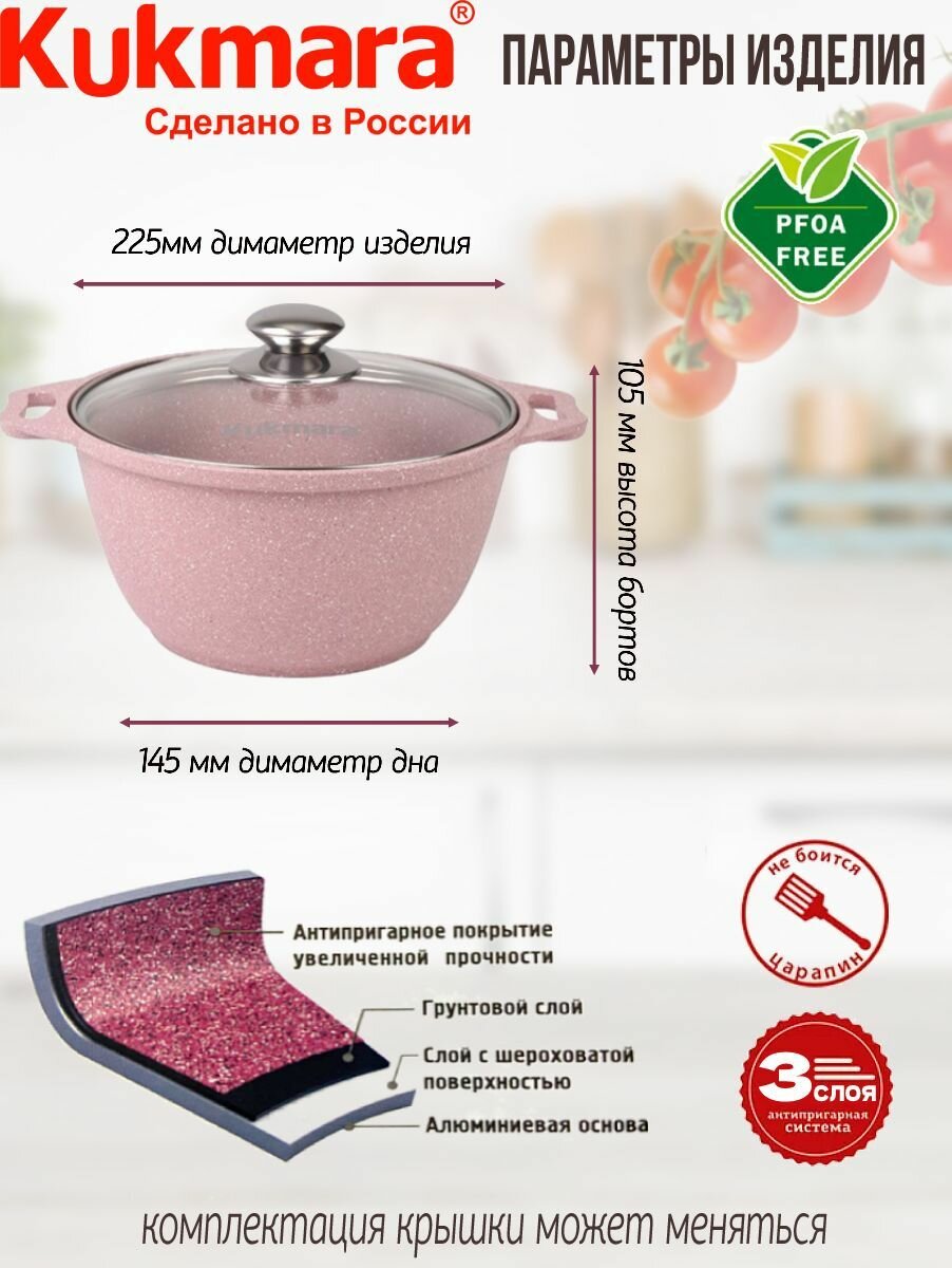 Кастрюля KUKMARA Stella, 3.2 л, стеклянная крышка