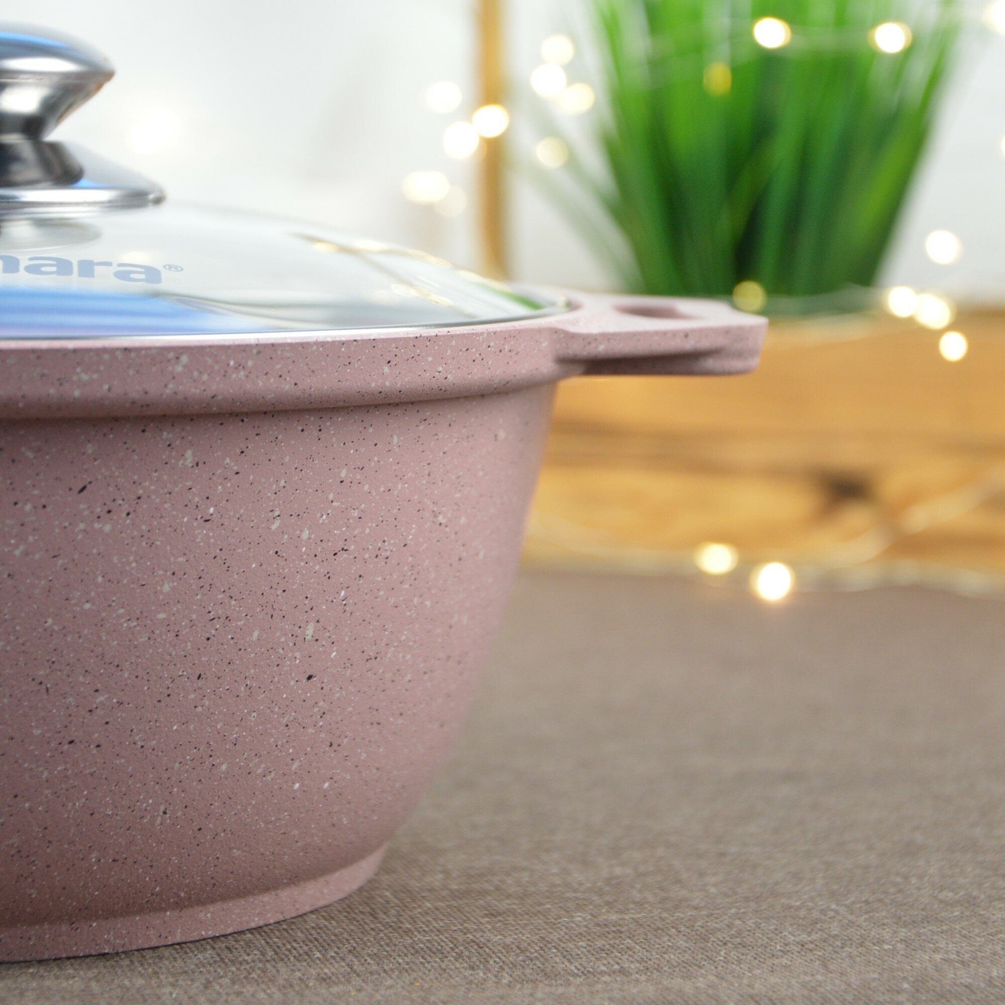 Кастрюля-жаровня 3л Kukmara Кукмара стеклянная крышка Антипригарное покрытие Trendy style цвет rose ж31tsr