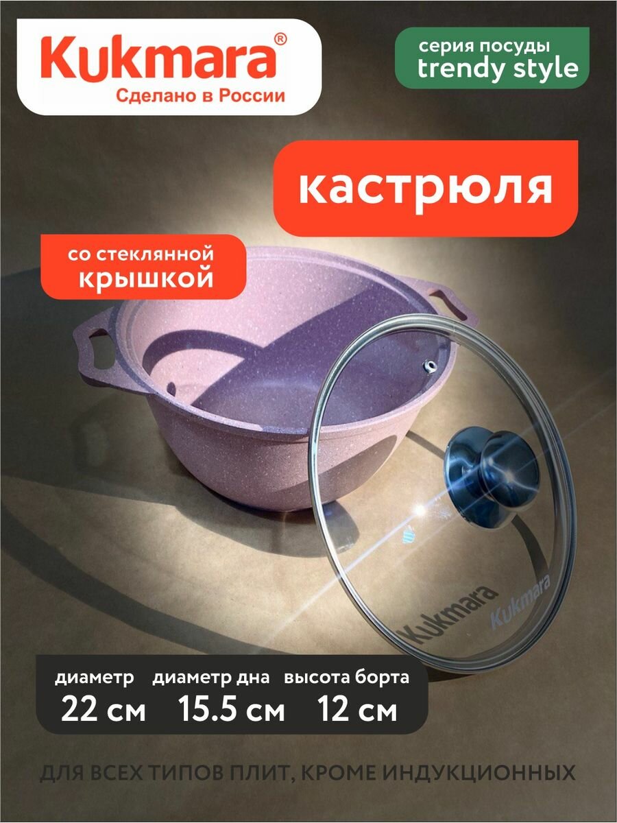Кастрюля Kukmara Stella антиприграрная литая, стеклянная крышка 5,2л (кск52а)
