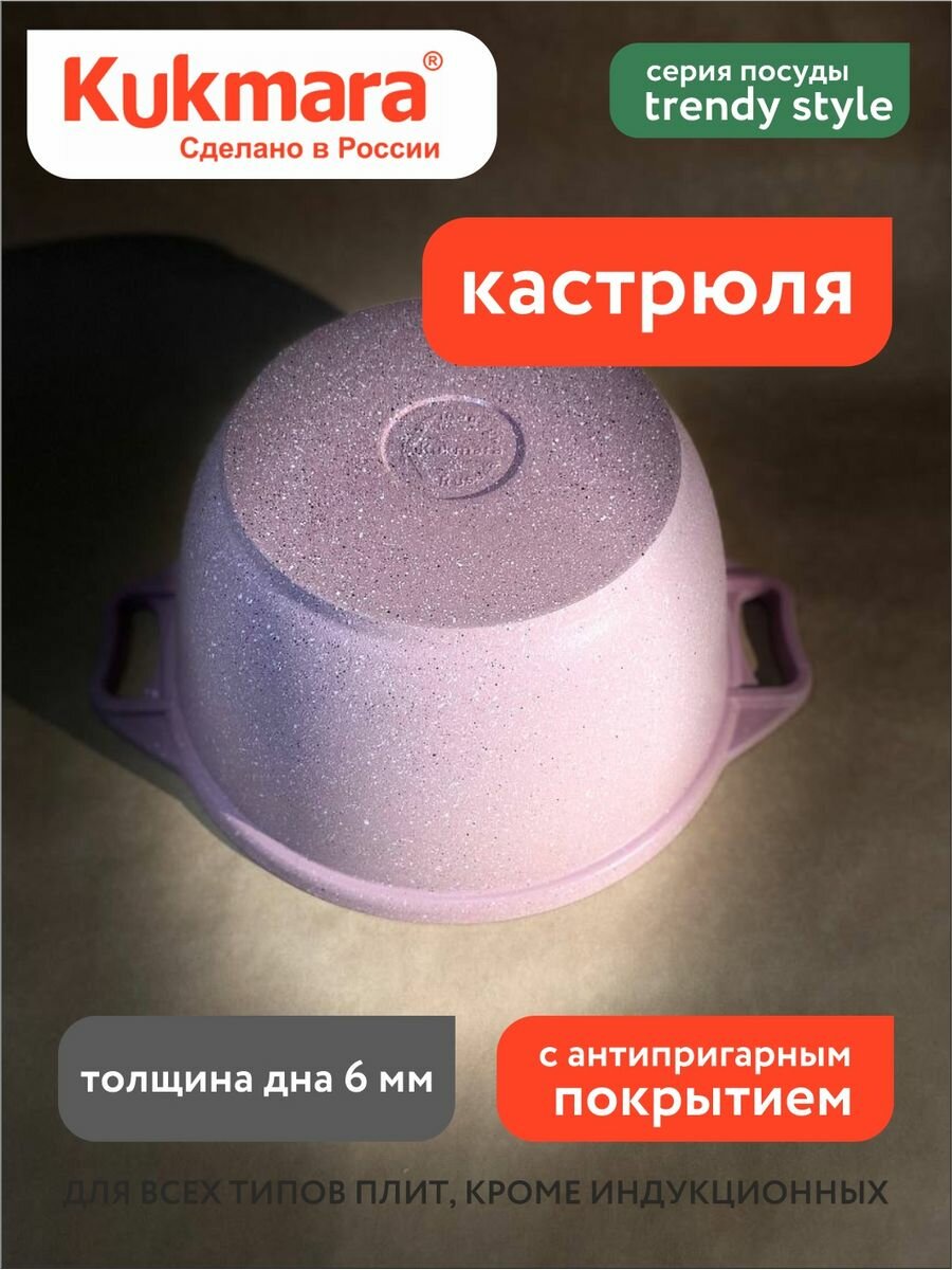 Кастрюля Kukmara Trendy Style, алюминий, антипригарное покрытие, розовая, 3 л
