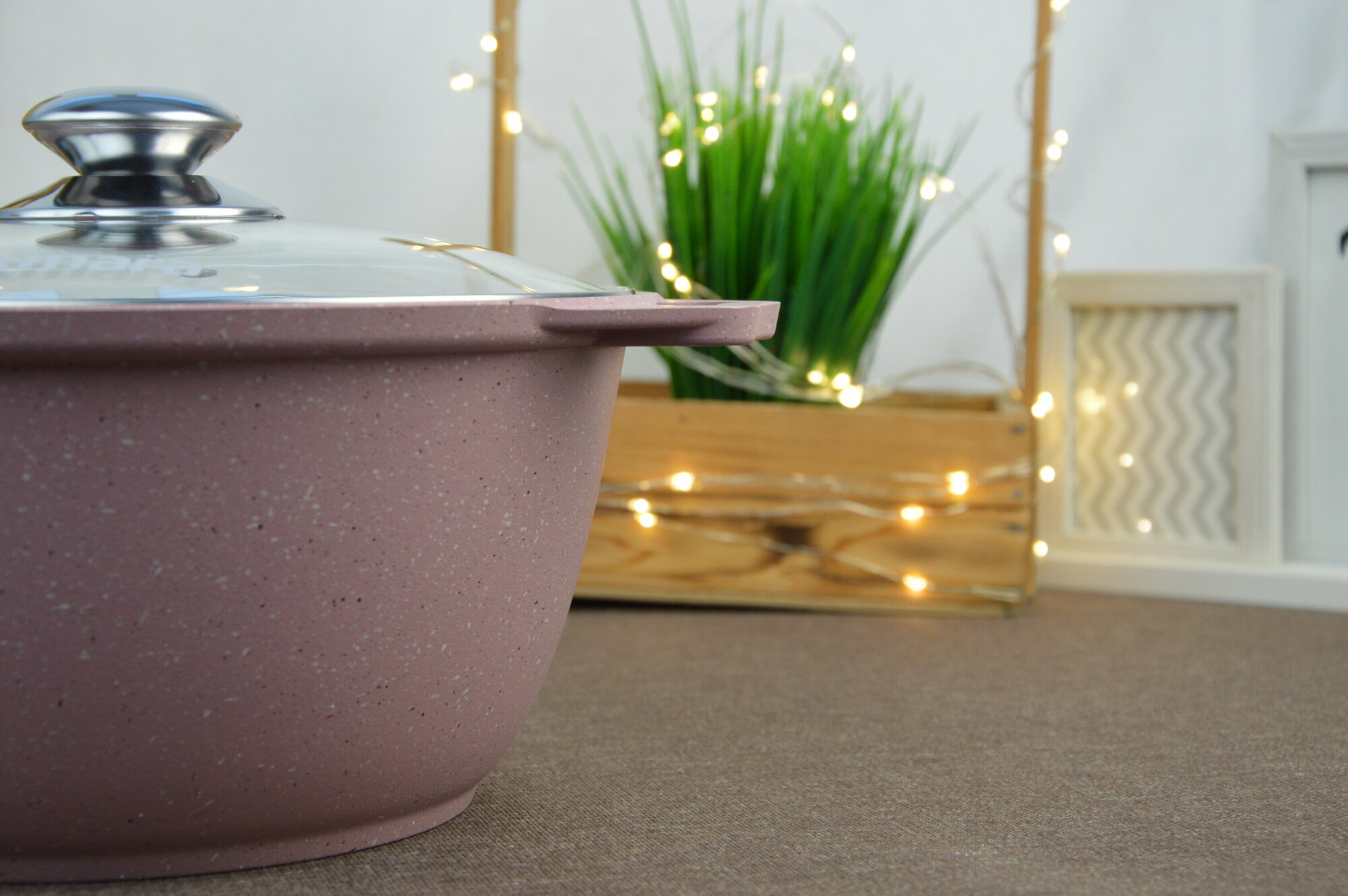 Кастрюля-жаровня 3л Kukmara Кукмара стеклянная крышка Антипригарное покрытие Trendy style цвет rose ж31tsr
