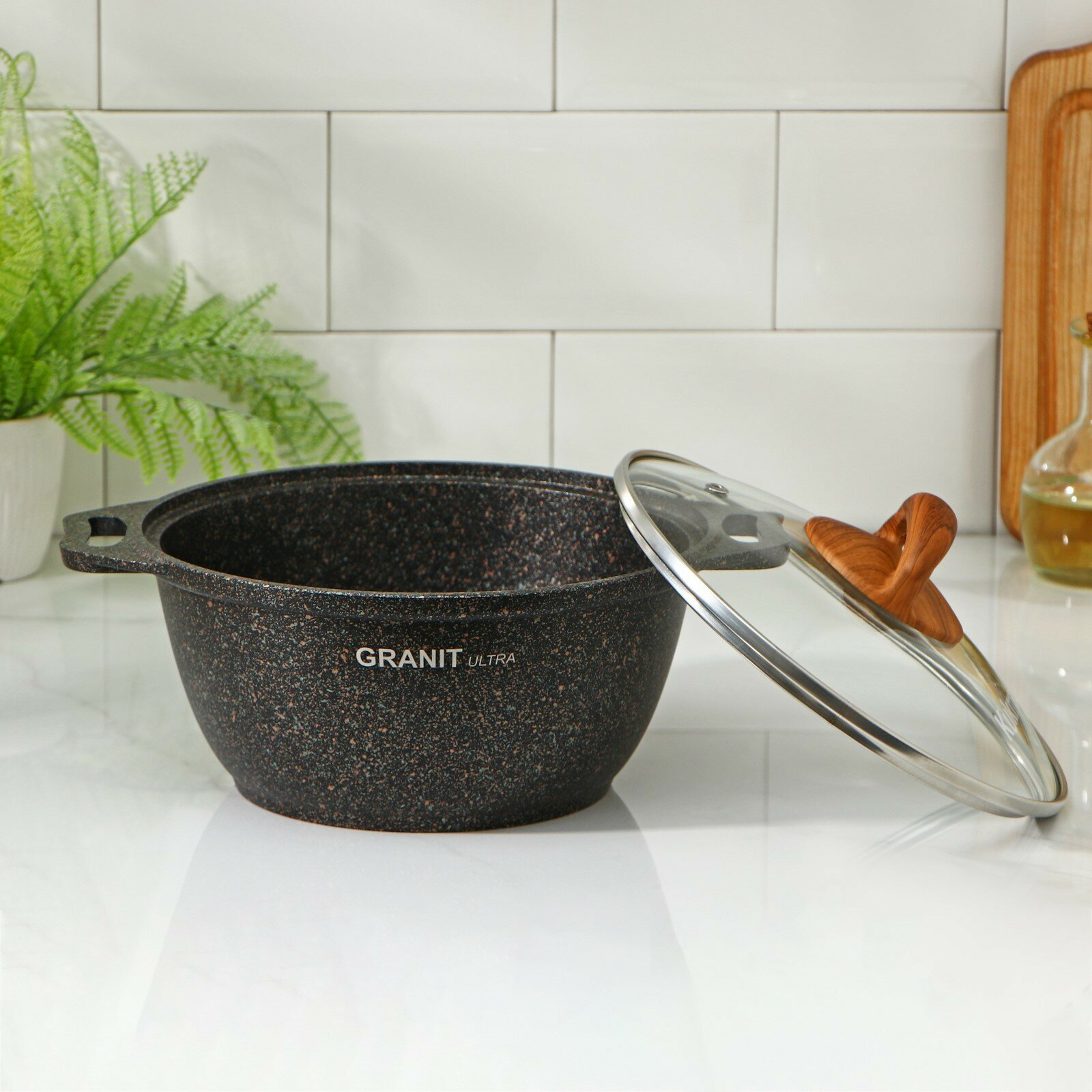 Кастрюля Granit ultra, 4 л, d=24 см, h=14 см, стеклянная крышка, антипригарное покрытие