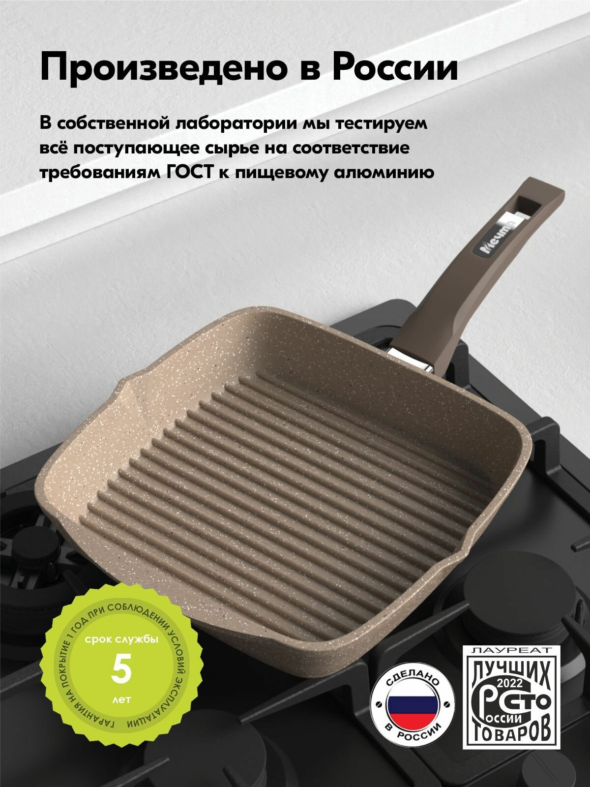 Сковорода-гриль квадр. "Мечта" 26*26см Гранит с антипригарным покрытием с несъемной ручкой и крышкой, можно мыть в посудомоечной машине