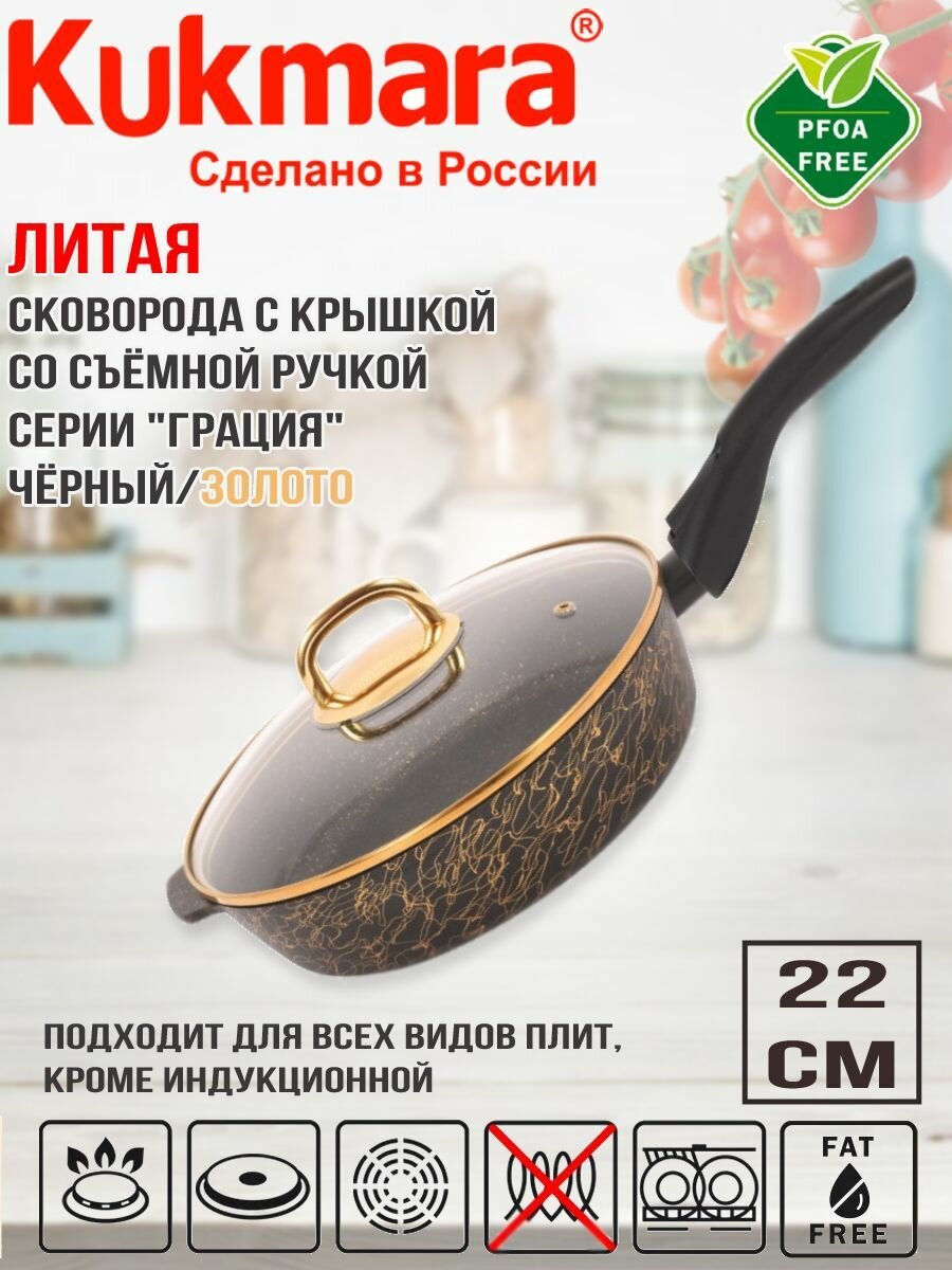 СохранитьСковорода KUKMARA сгчз222а, черный/золотой интересное: