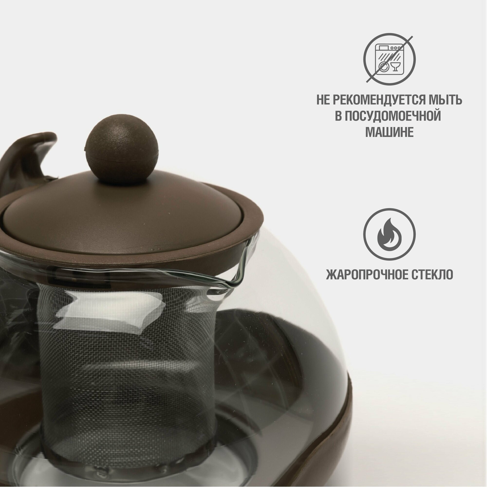 Стеклянный заварочный чайник BAROUGE BF-502/48 с металлическим ситом, черный, 700 мл BF-502 700 мл/черный/чайник