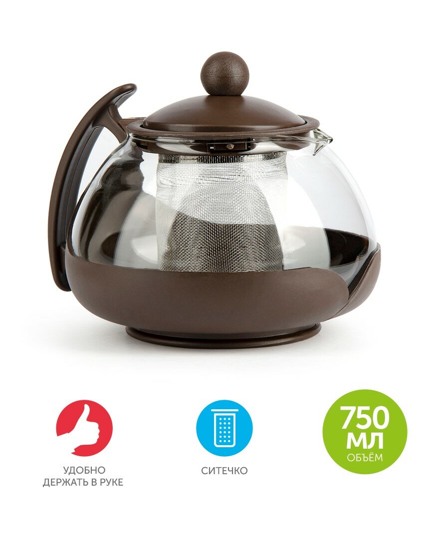 Чайник заварочный круглый пластик коричневый 750 , BF-500