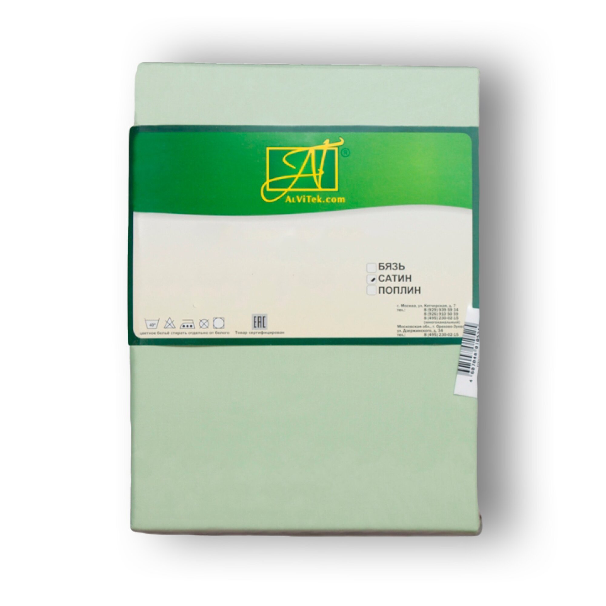 Простыня на резинке из сатина альвитек ПР-СО-Р-090-МЕН ментол 90х200