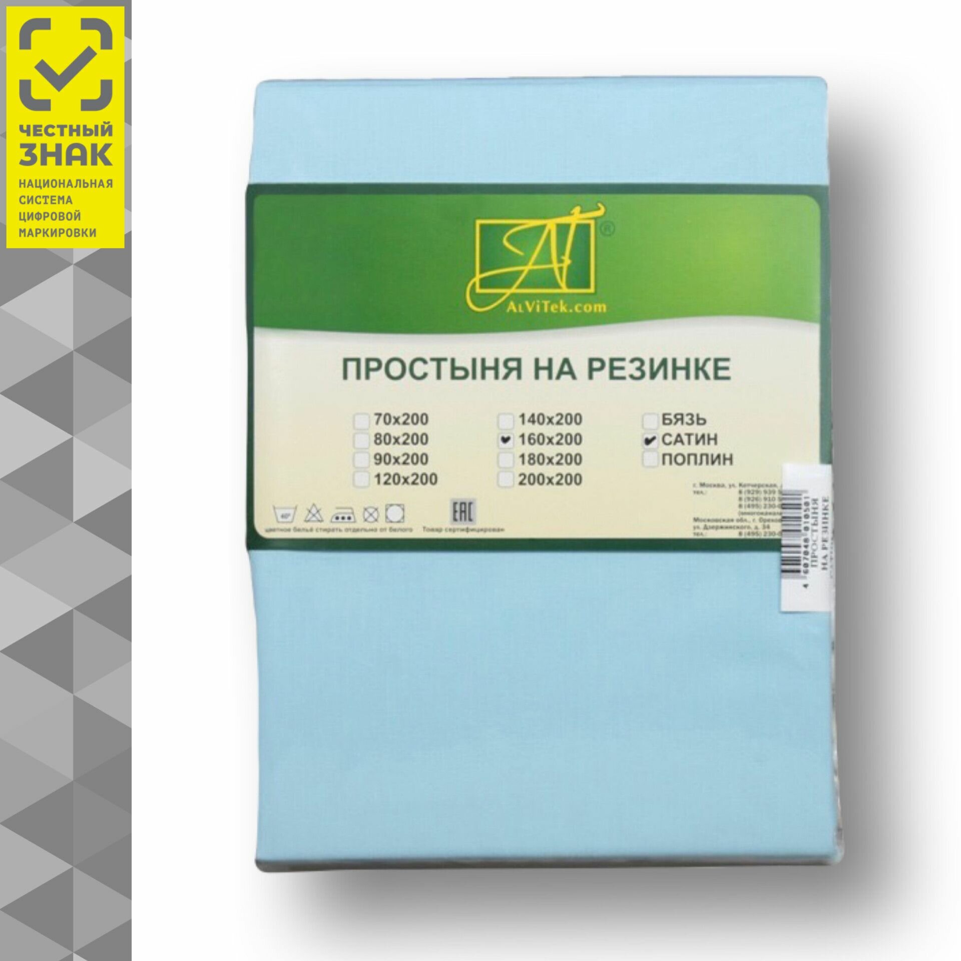 Простыня на резинке Альвитек, 090х200x25, ткань 100% хлопок Сатин, цвет Голубой, арт. ПР-СО-Р-090-ГОЛ