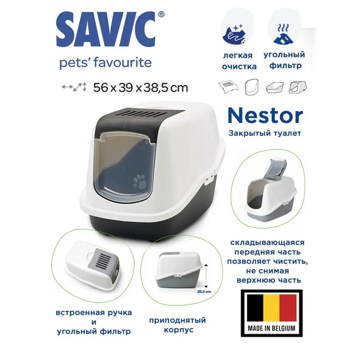 SAVIC NESTOR туалет домик для кошек серый 56 х 39 х 38,5 см (1 шт)