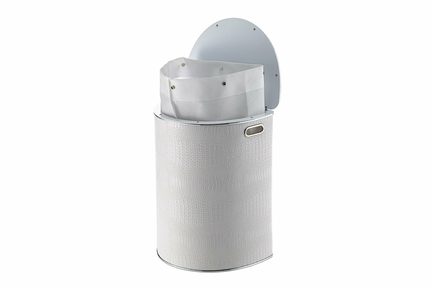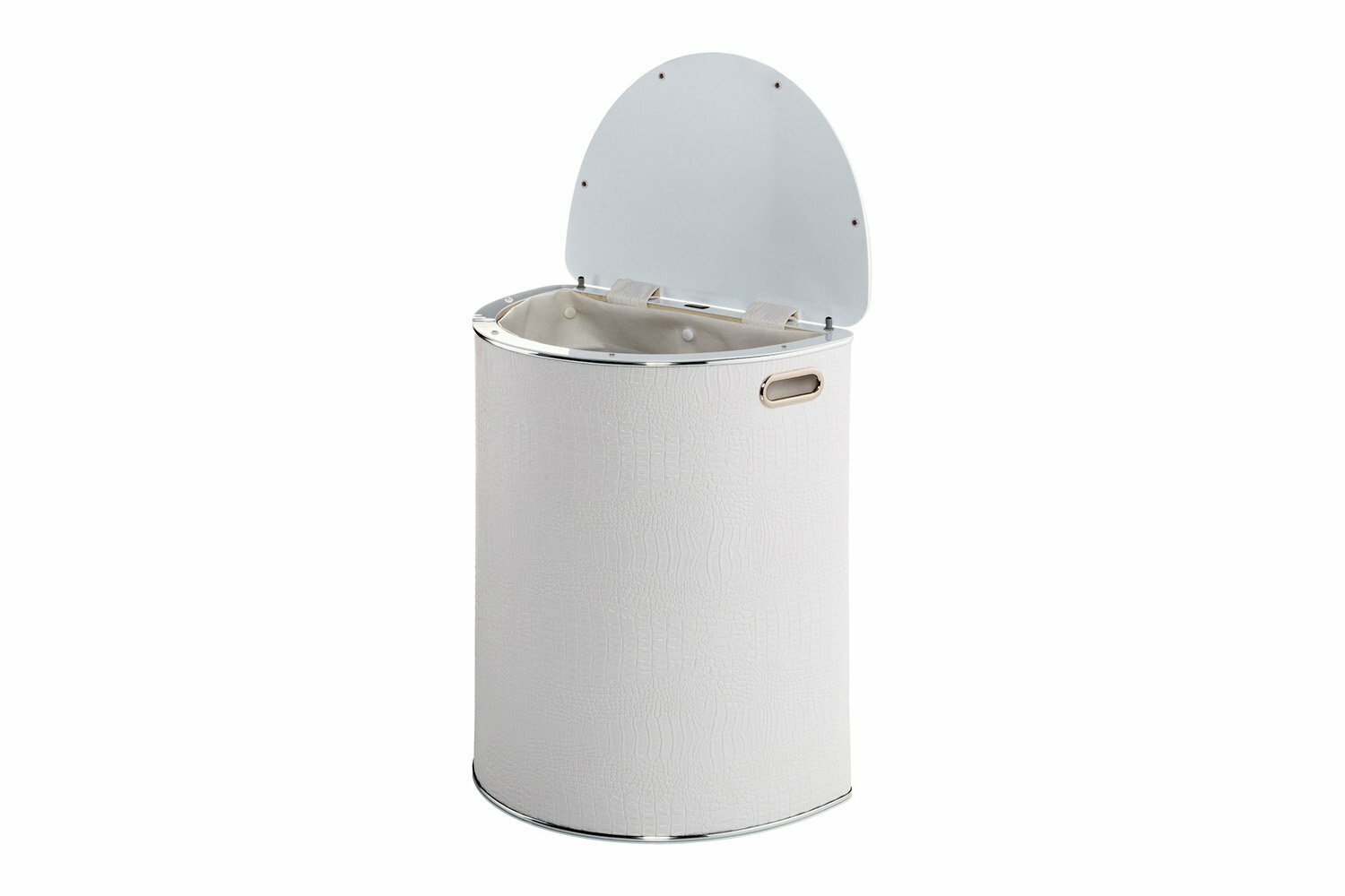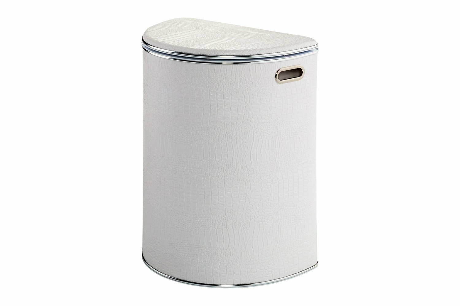 Купить Корзина для белья Geralis KWH-O CROCO белая, кант хром, полукруглая