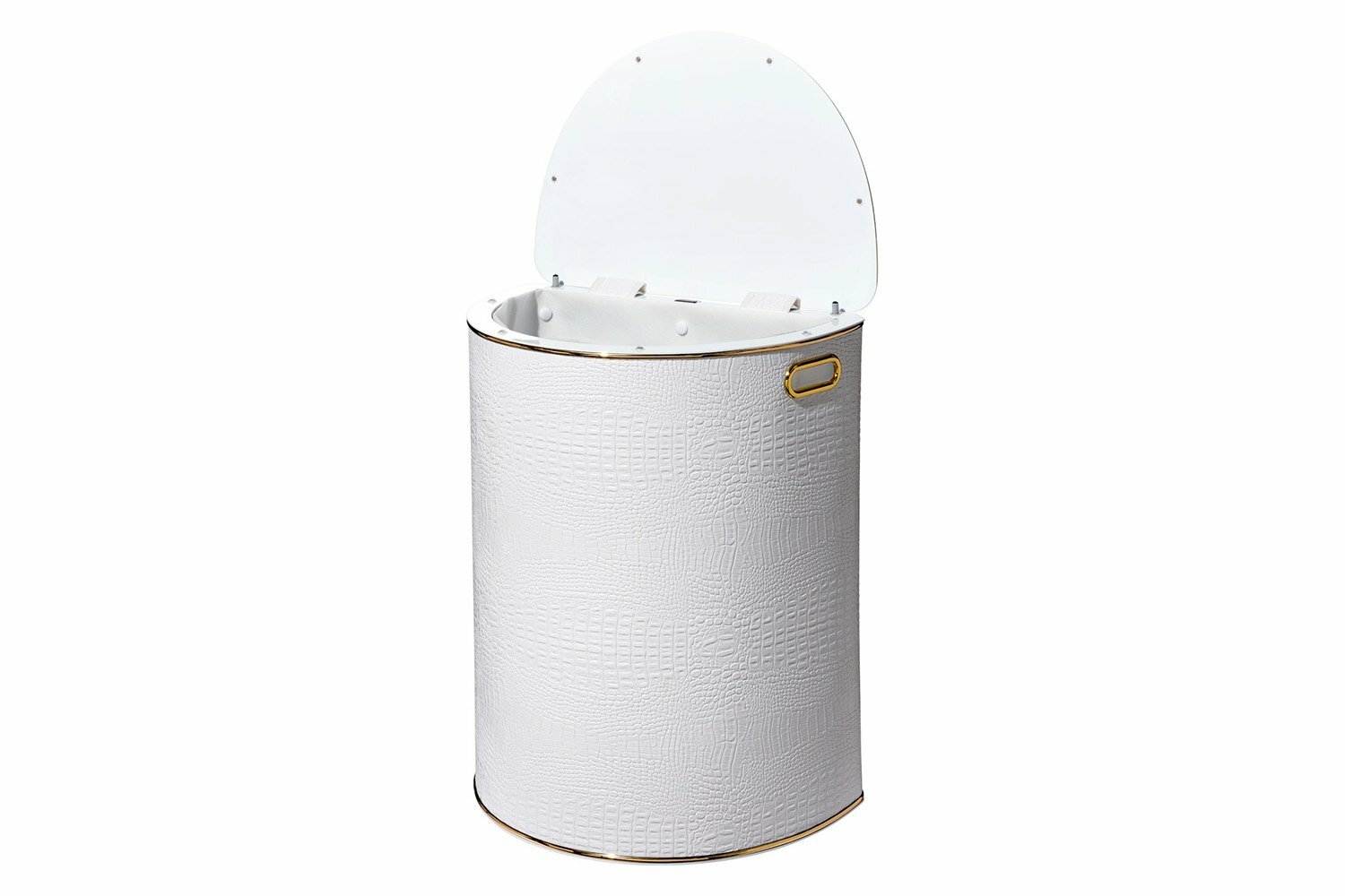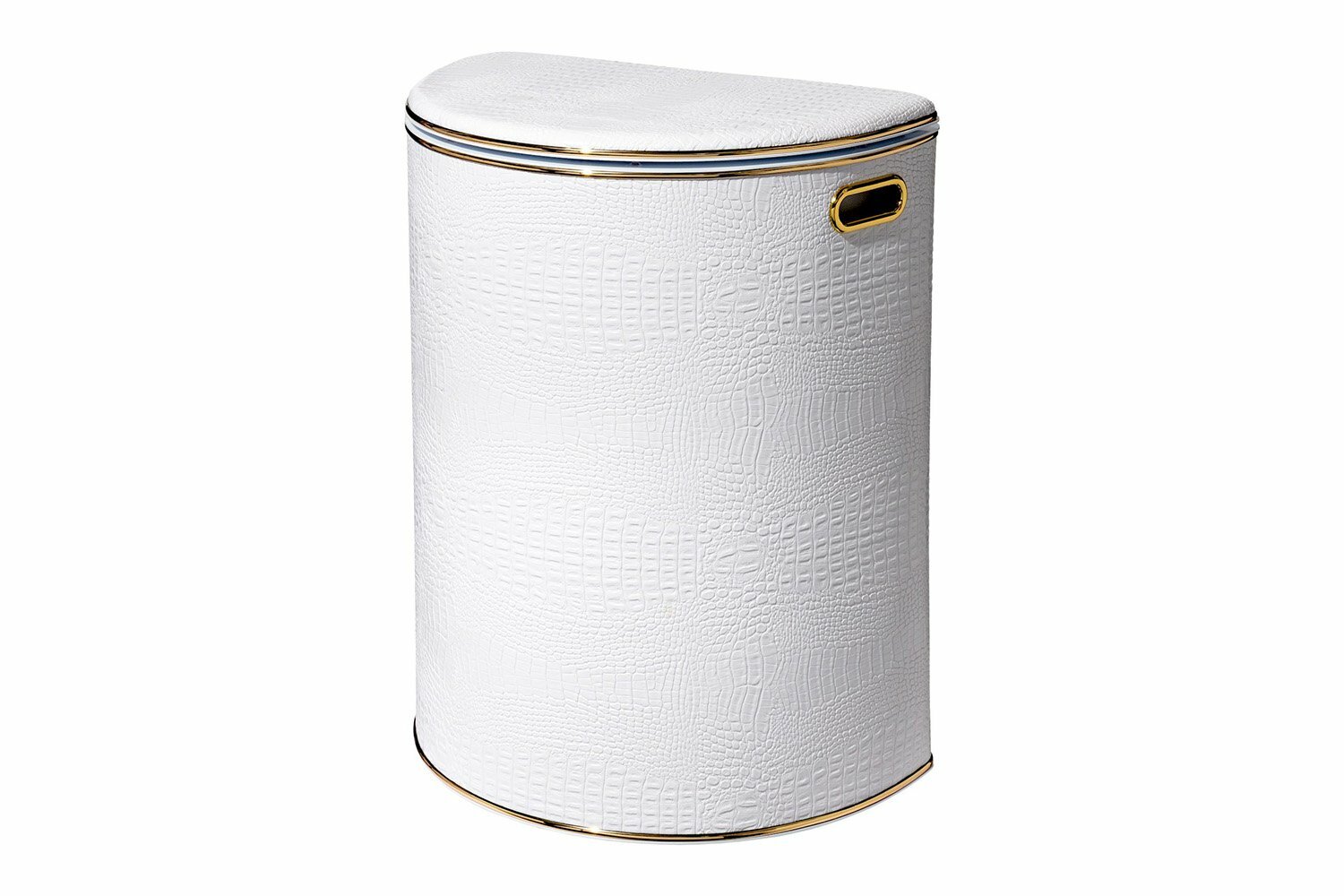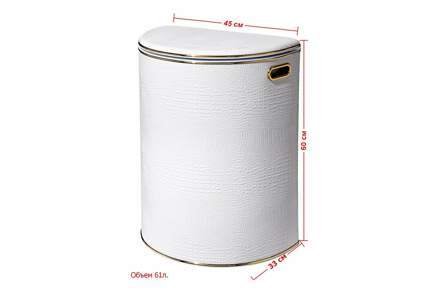 Купить Корзина для белья Geralis KWG-O CROCO белая, кант золото, полукруглая