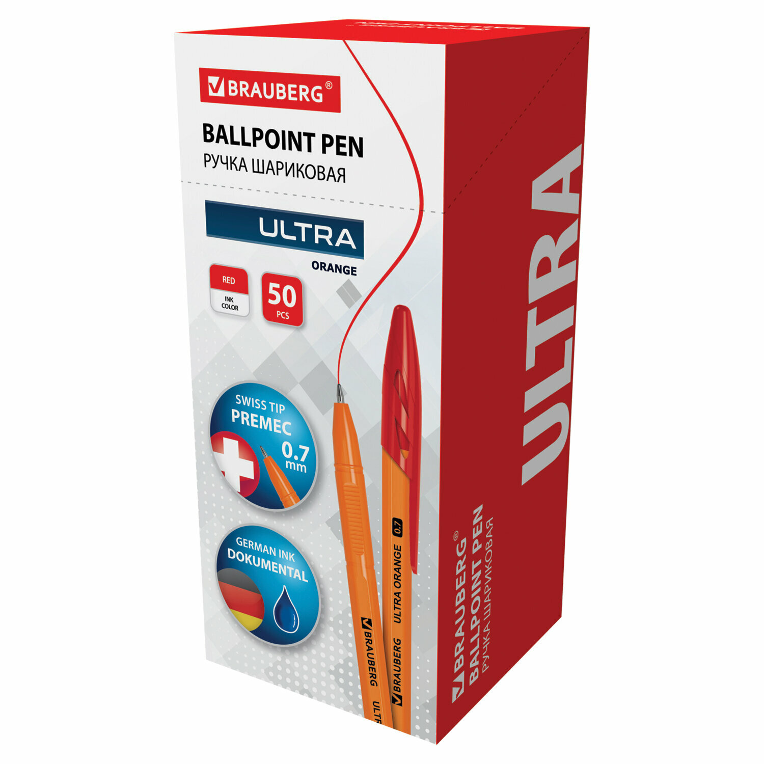 Купить Ручка шариковая BRAUBERG "ULTRA ORANGE" красная узел 0 7 мм чернила германия наконечник швейцария, 50 шт