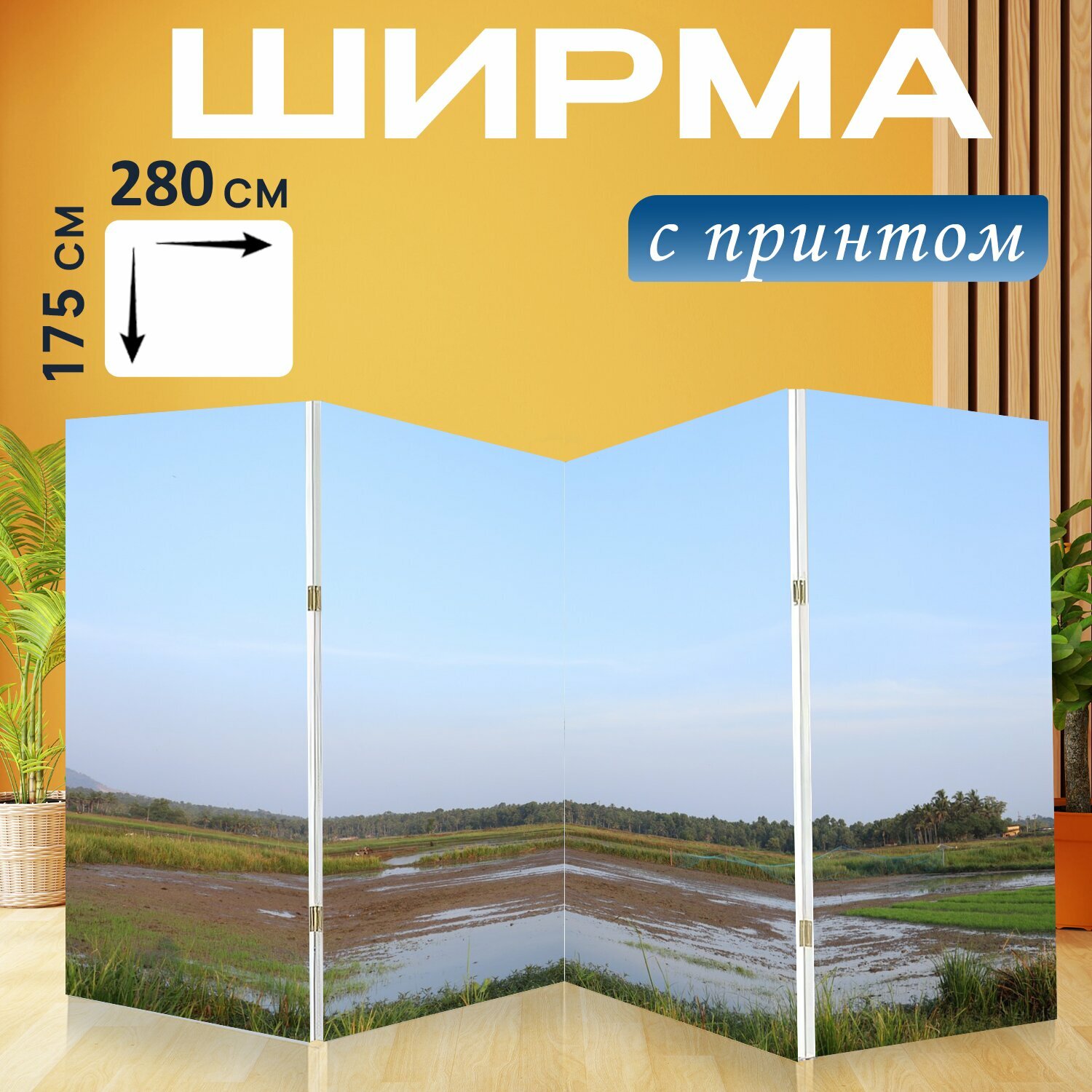 Ширма "Природа, открытый, пейзаж" перегородка для зонирования комнаты с принтом 280x175 см. на холсте интересное:
