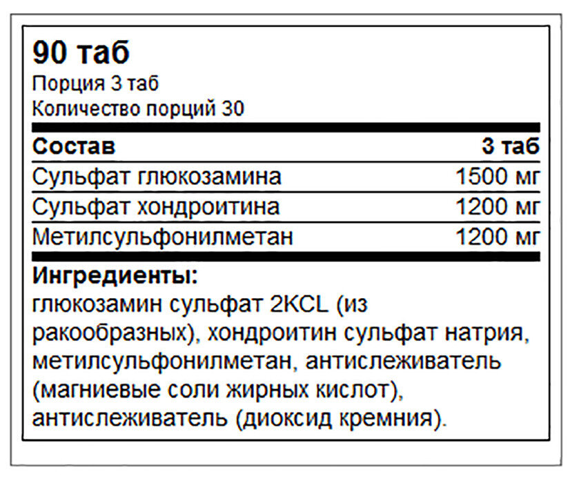 | Основной ингредиент | MCM / глюкозамин / хондроитин |